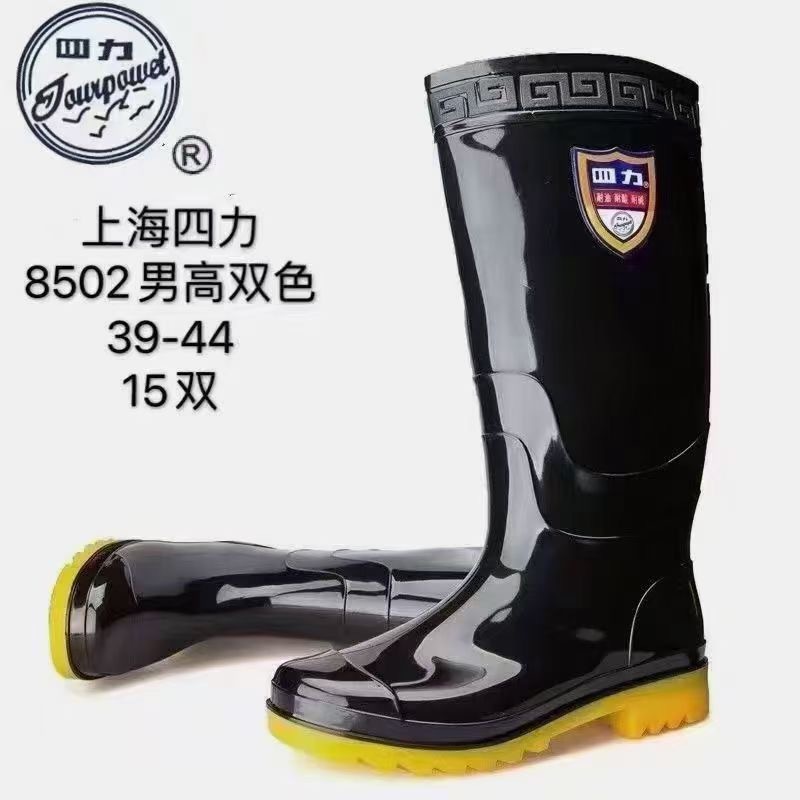 4 개의 전원 8502 비 신발 남자의 물 신발 두꺼운 긴 비 부츠 높은 미끄럼 고무 신발 방수 산 및 알칼리 저항하는 노동 보호 신발