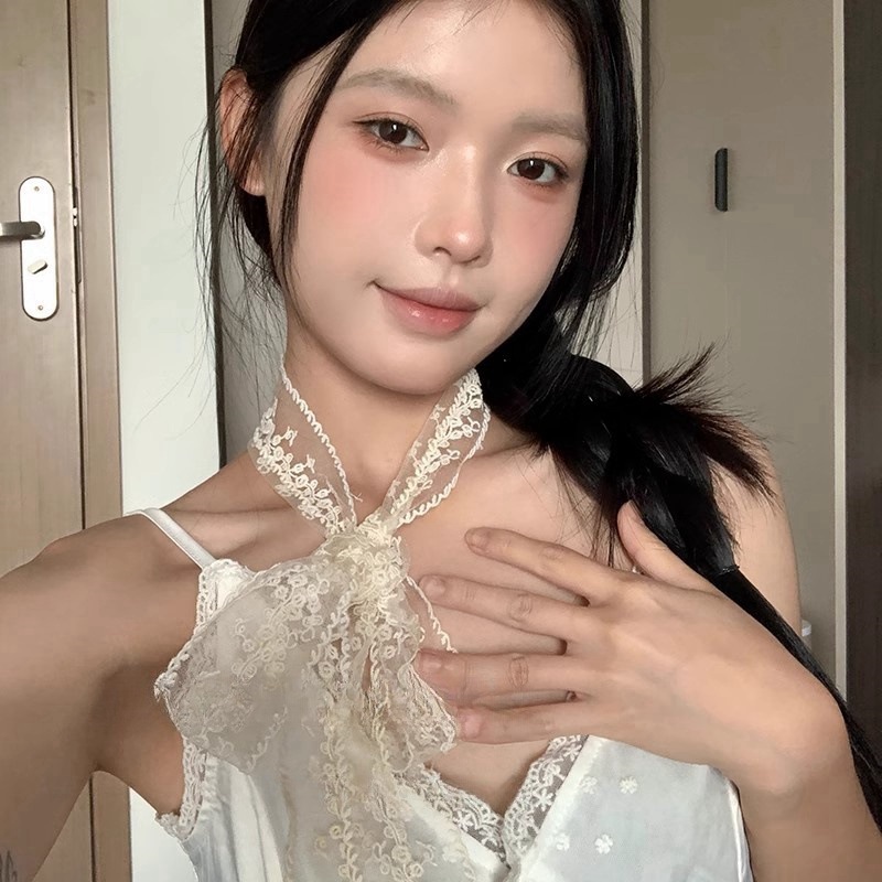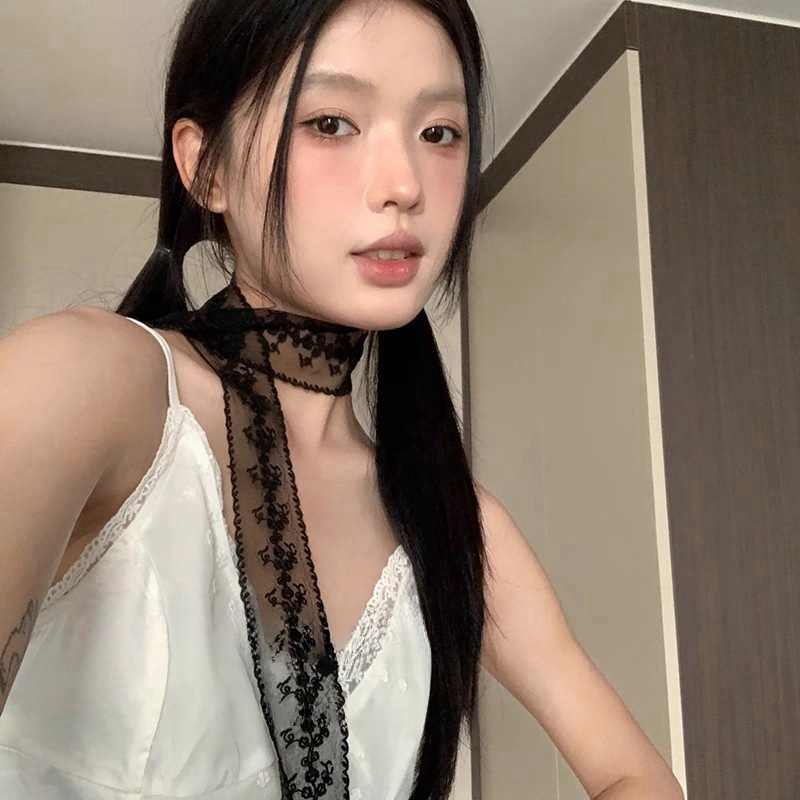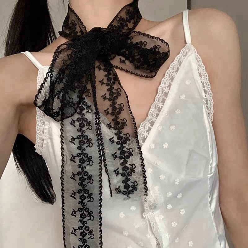 한국 스타일 블랙 순수 욕망 레이스 리본 여성 스카프 헤어 밴드 타이 헤어 빈티지 장식 스카프 벨트 가을 겨울