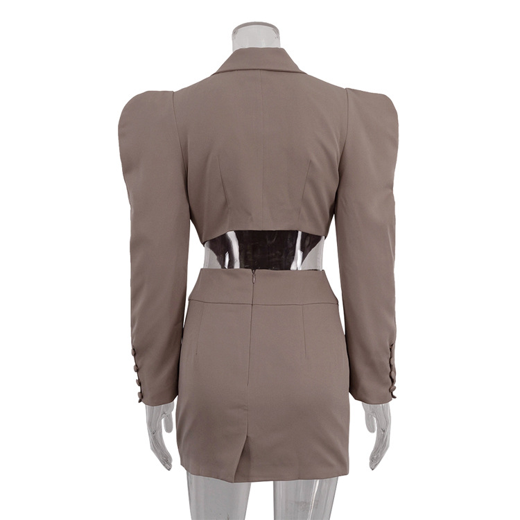 유럽과 미국 여성의 2024 가을/겨울 새로운 긴 소매 옷깃 Fishbone 최고 엉덩이 스커트 스커트 투피스 통근 세트스토어 가기