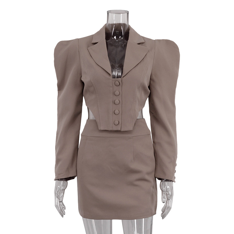 유럽과 미국 여성의 2024 가을/겨울 새로운 긴 소매 옷깃 Fishbone 최고 엉덩이 스커트 스커트 투피스 통근 세트