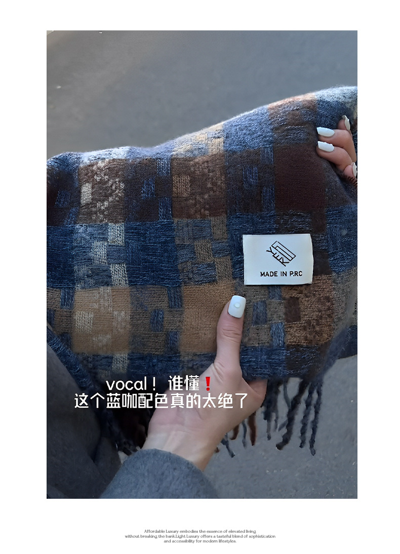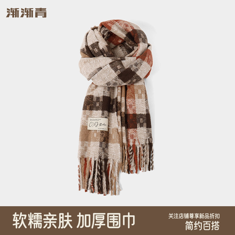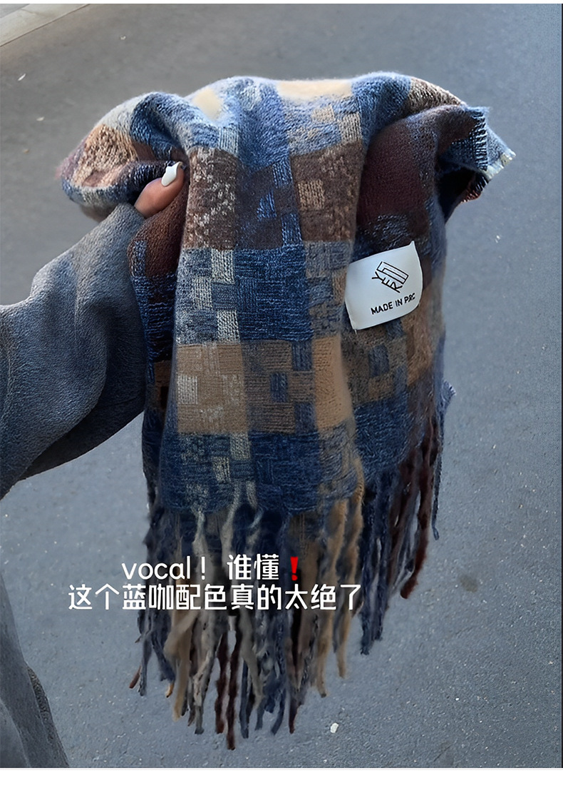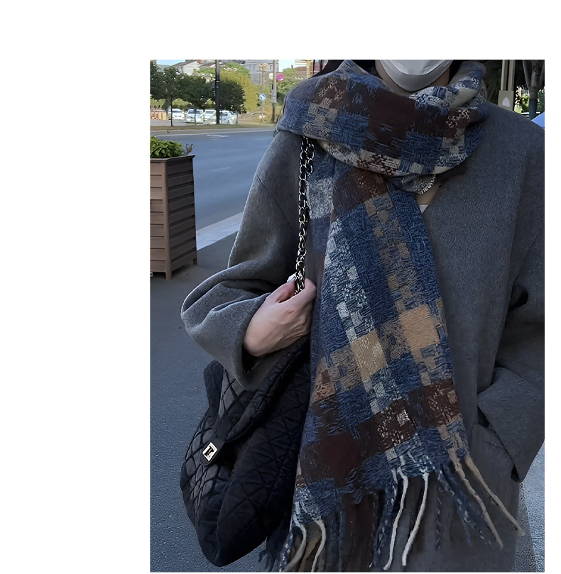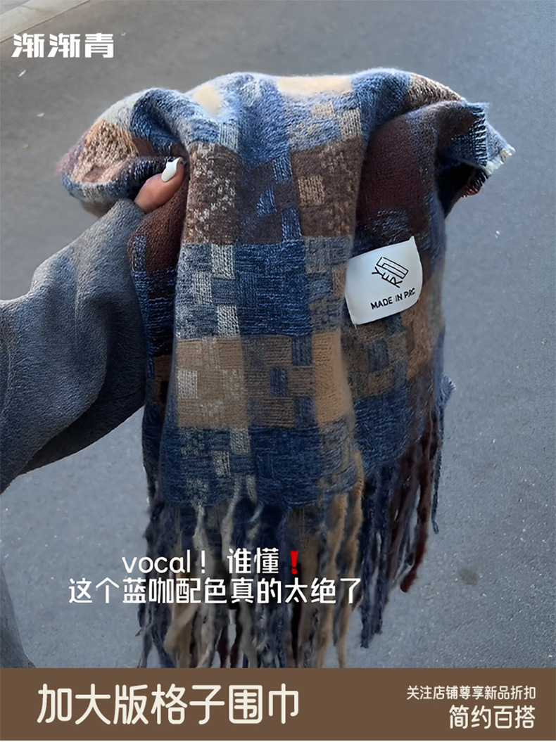 격자 무늬 스카프 여자 겨울 2024 새로운 한국식 분위기 센스 블루 체크 무늬 목도리 목 보호 따뜻한 올 매치 스카프스토어 가기