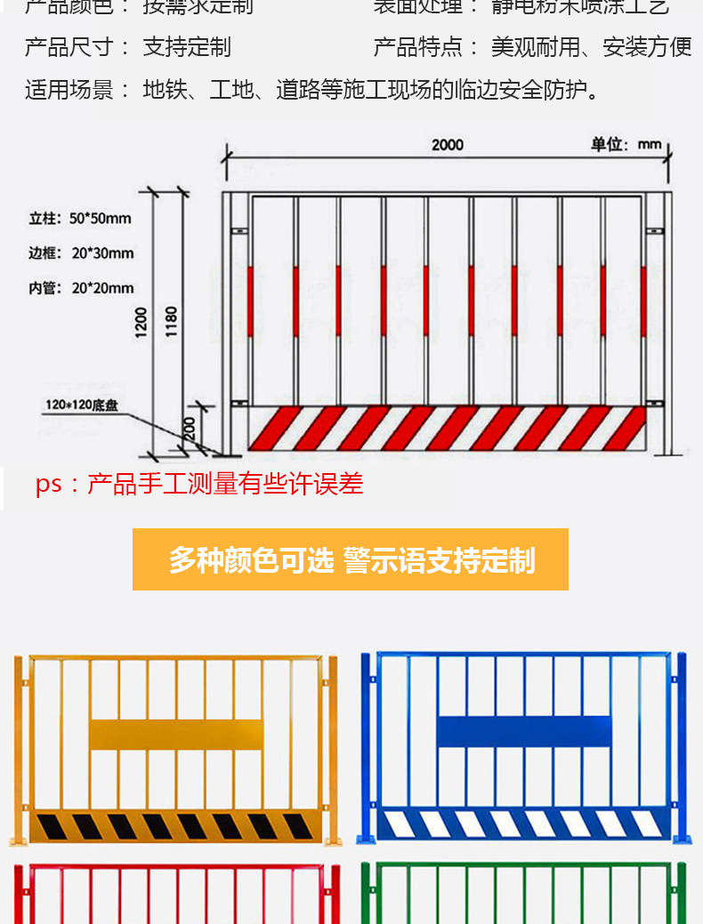 재단 피트 가드 레일 이동식 고정 울타리 도로 경고 건물 울타리 안전 건설 테두리 울타리스토어 가기