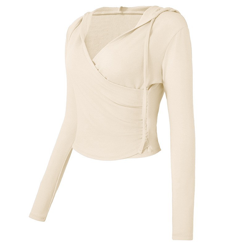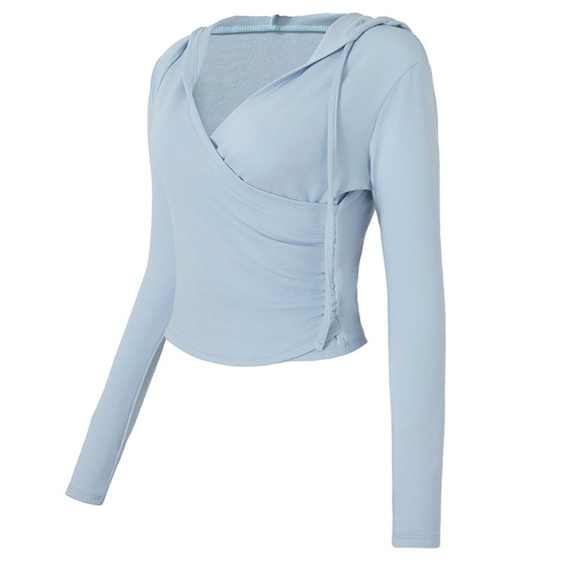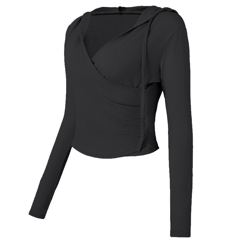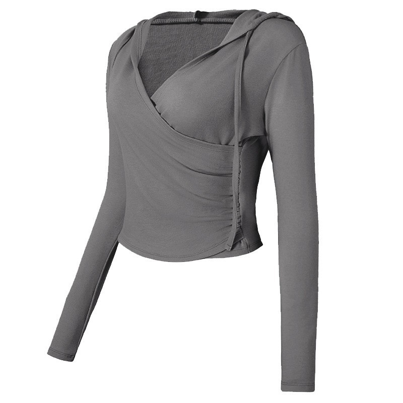 국경 간 V 넥 요가 세트 여성의 가을과 겨울 후드 슬림 핏 필라테스 훈련 스포츠 탑 달리기 피트니스 세트 긴팔