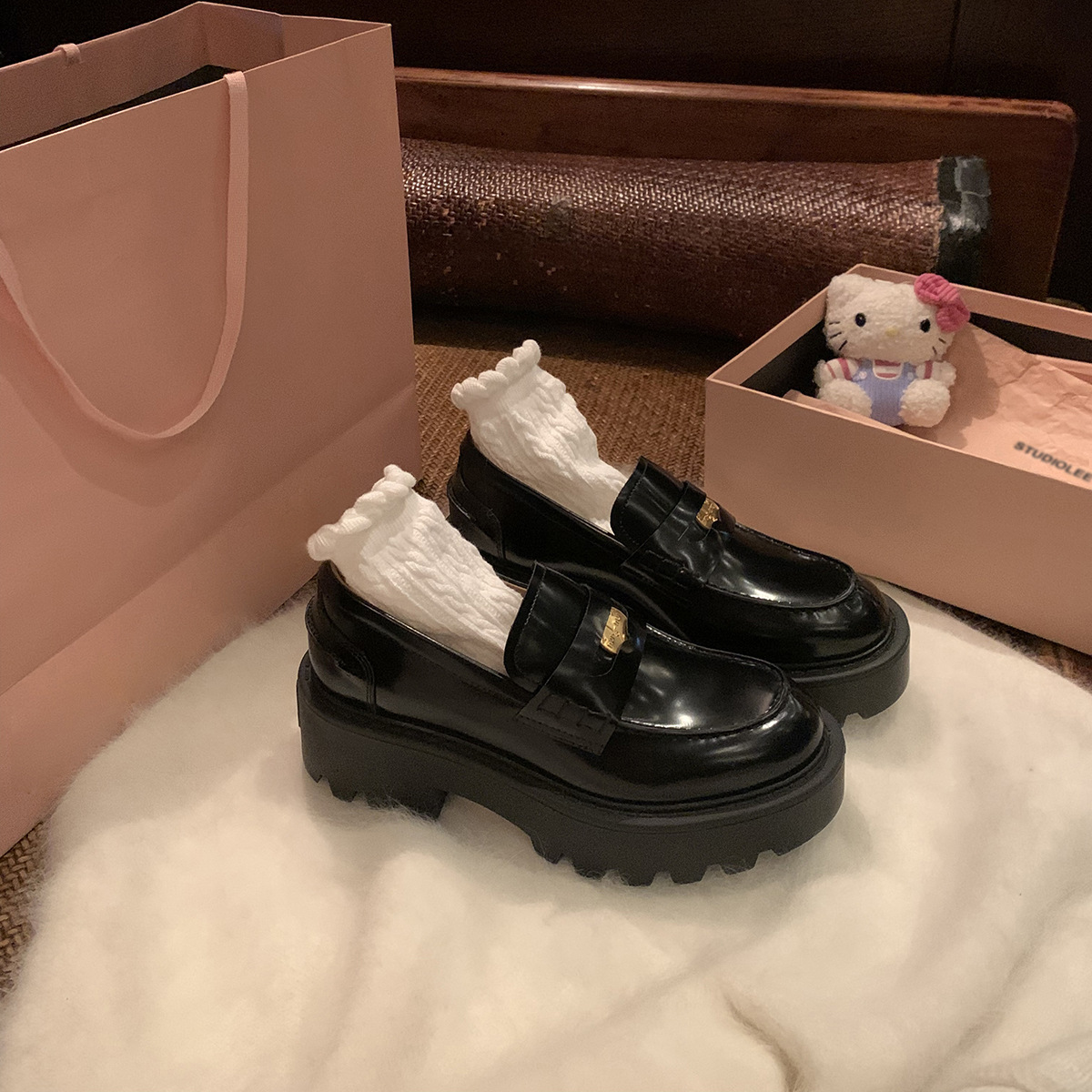 소스 재고 ~ 포도 어머니 비싼 작은 금화 둥근 머리 가죽 신발 두꺼운 발 뒤꿈치 두꺼운 밑창 신발 페달 로퍼 여성스토어 가기