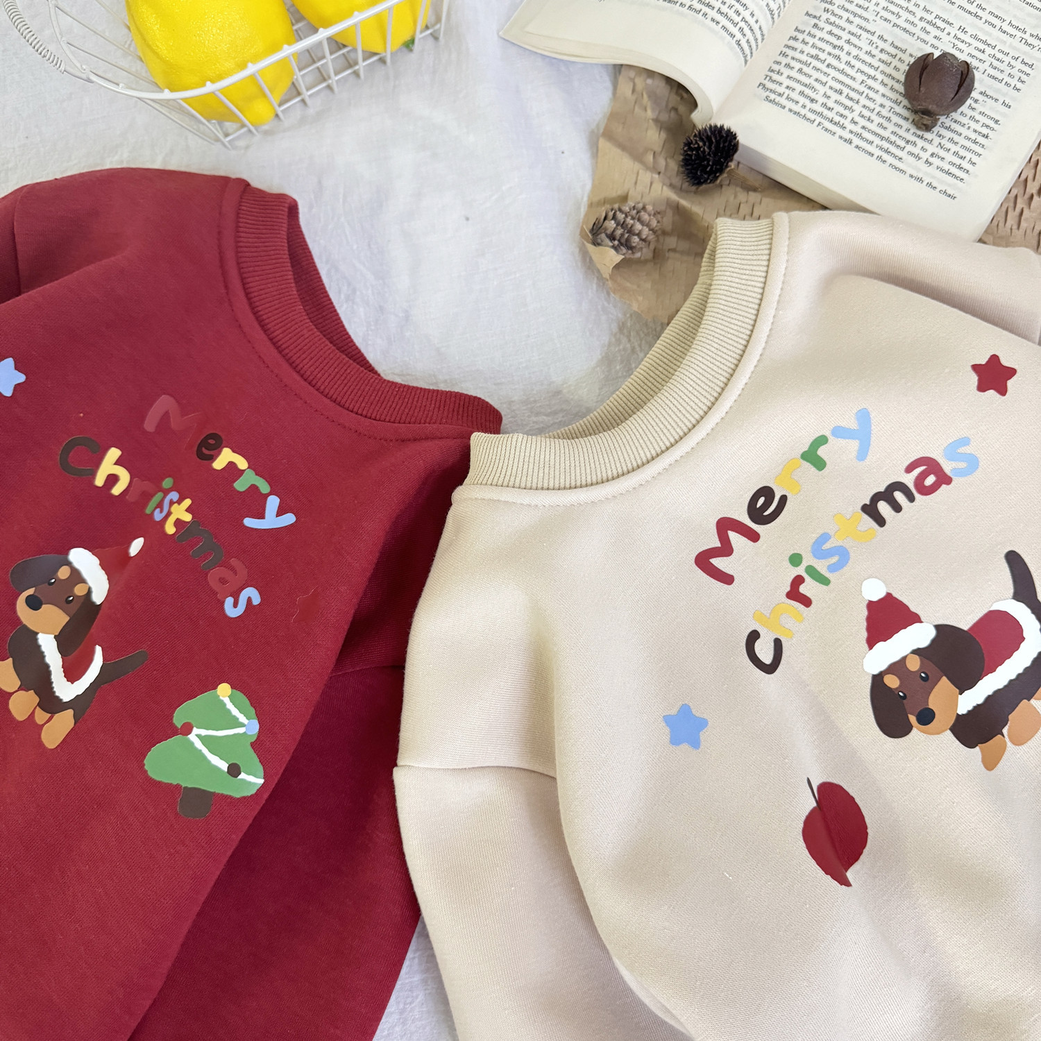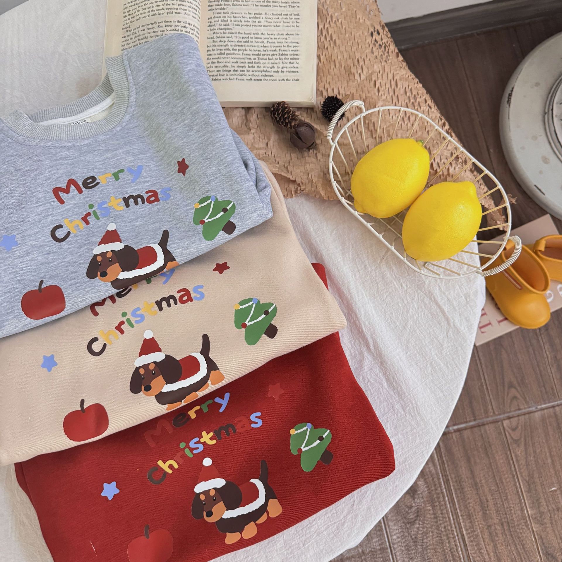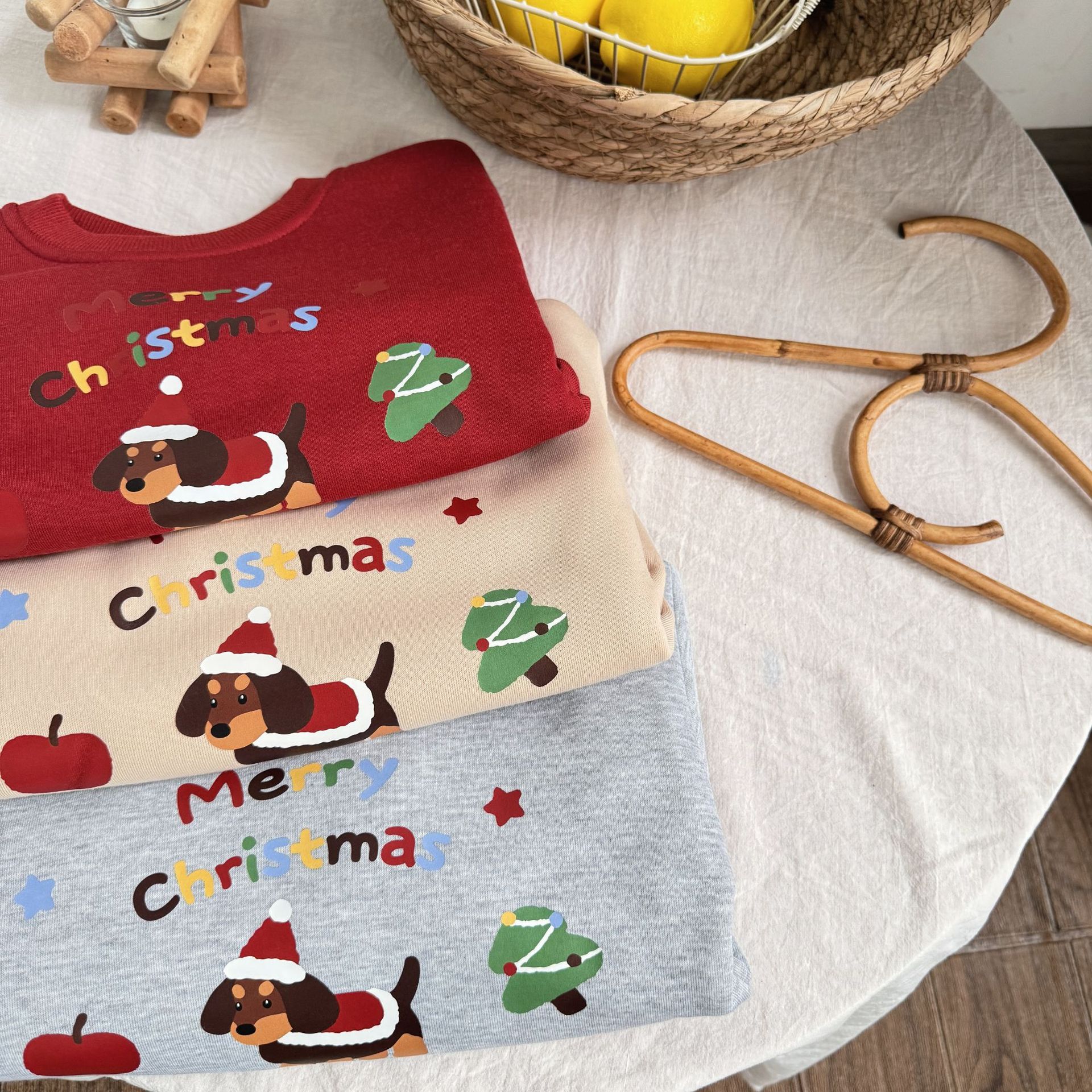 어린이 크리스마스 닥스 훈트 개 운동복 가을 및 겨울 새 소년과 소녀 풀오버 아기의 기모 최고 새해 복 셔츠