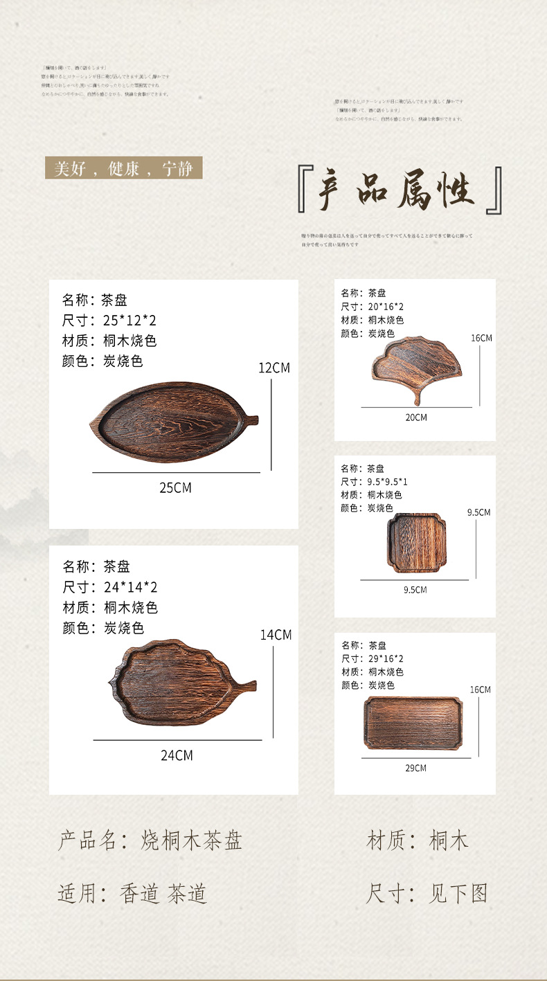 빈티지 불타는 퉁 나무 티 트레이 단단한 나무 높은 색상 가치 가정용 다도 나무 트레이 티 컵 제조 업체 배치