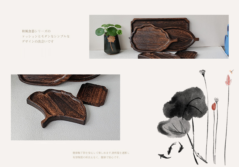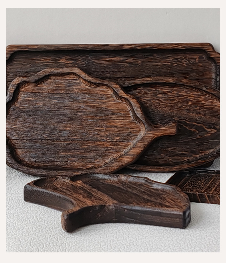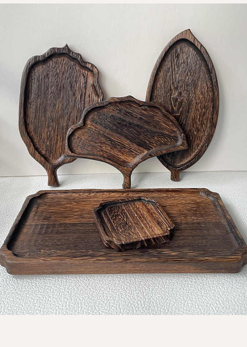 빈티지 불타는 퉁 나무 티 트레이 단단한 나무 높은 색상 가치 가정용 다도 나무 트레이 티 컵 제조 업체 배치스토어 가기