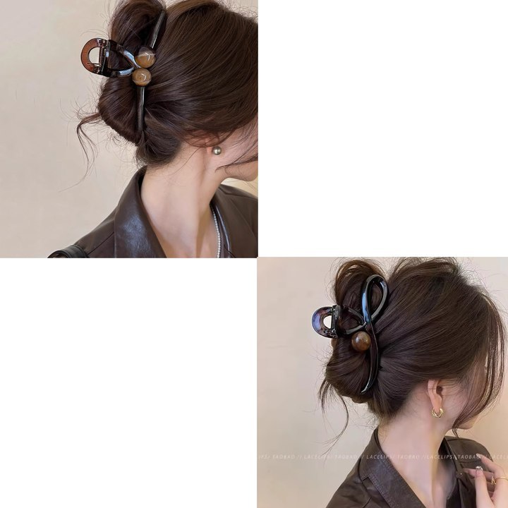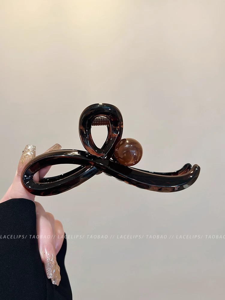 • 라지 글로시 블랙 바텀 클립 [다크 커피 펄]