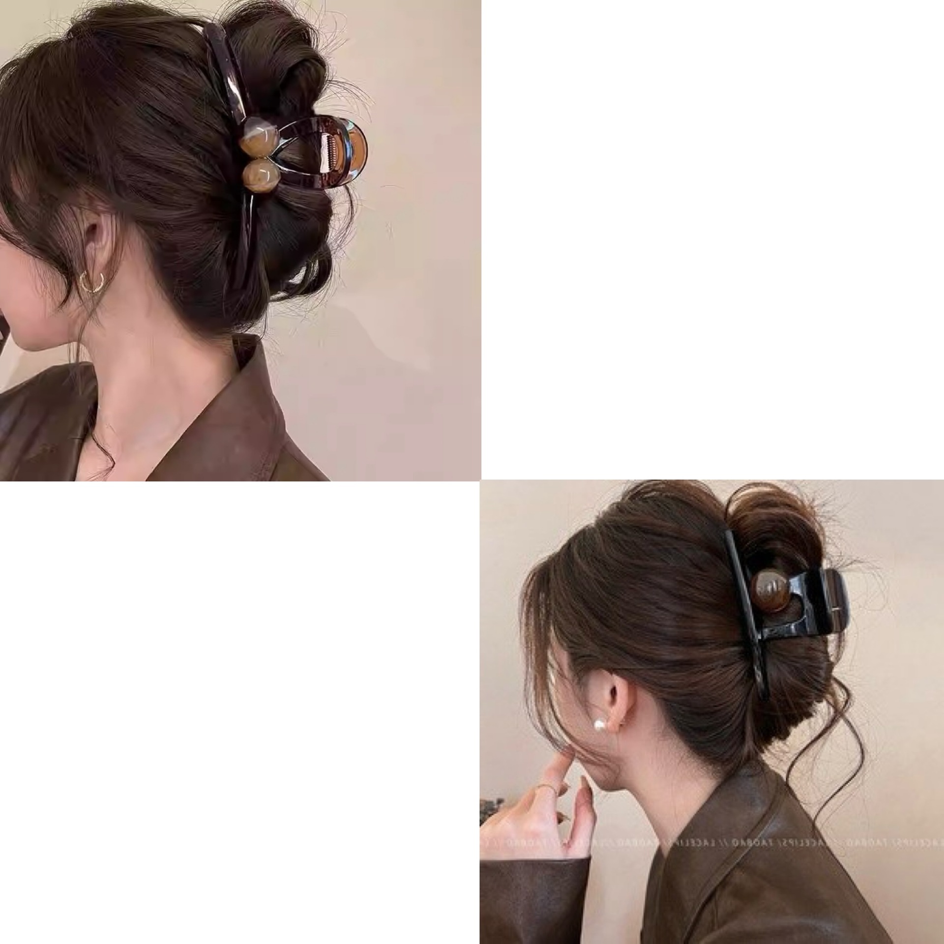 • 대형 반투명 그레이 하단 클립 [라이트 브라운 펄]
