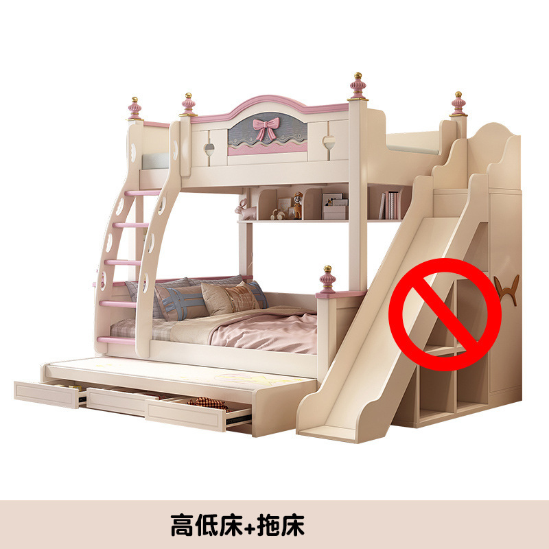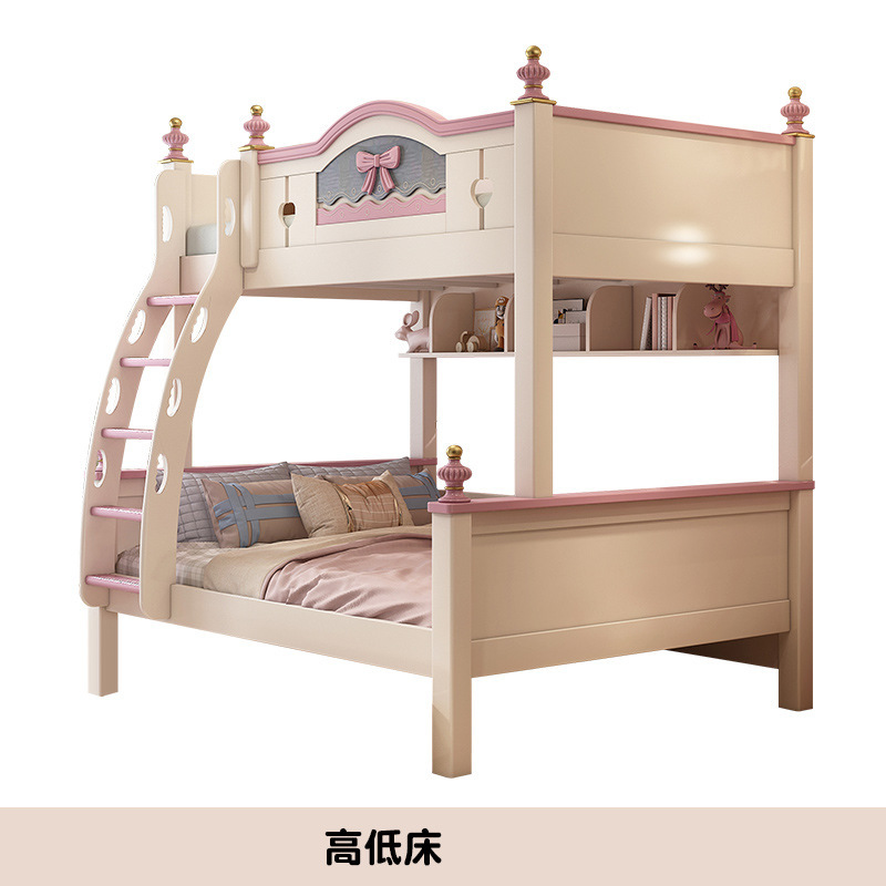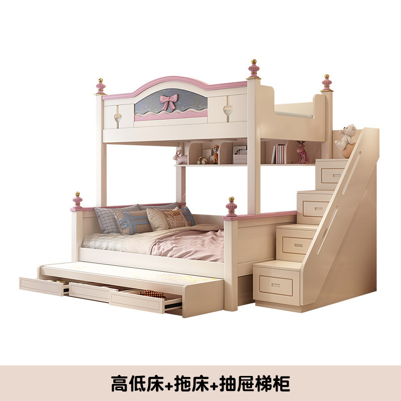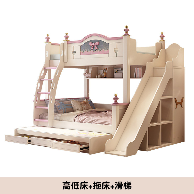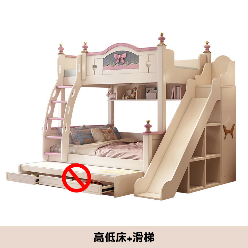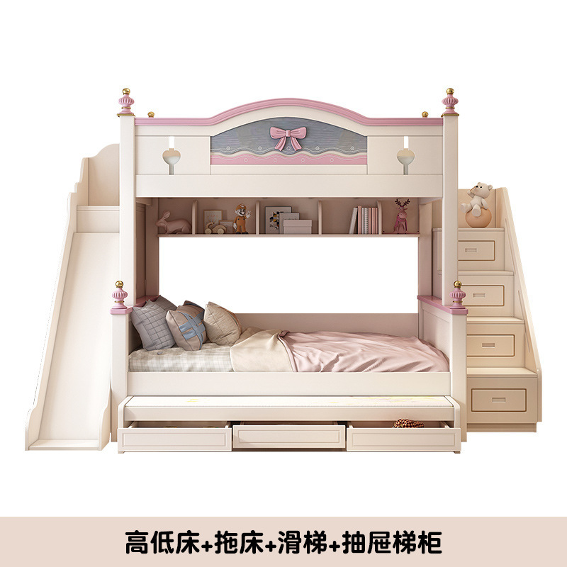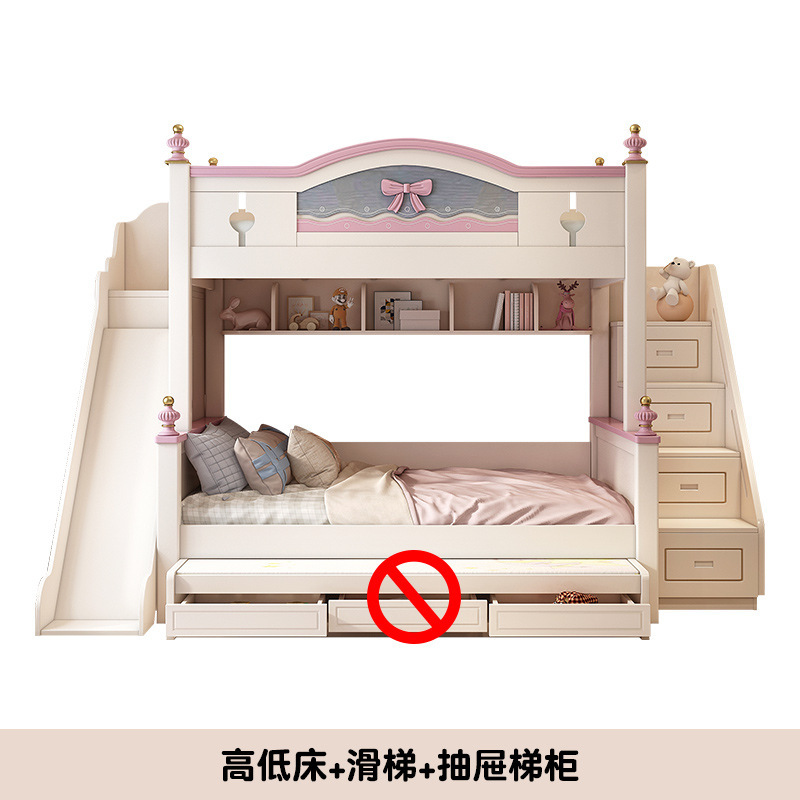 어린이 침대 침대 소녀 공주 침대 높고 낮은 나무 침대 어머니 침대 슬라이드 핑크 다기능 조합 침대스토어 가기