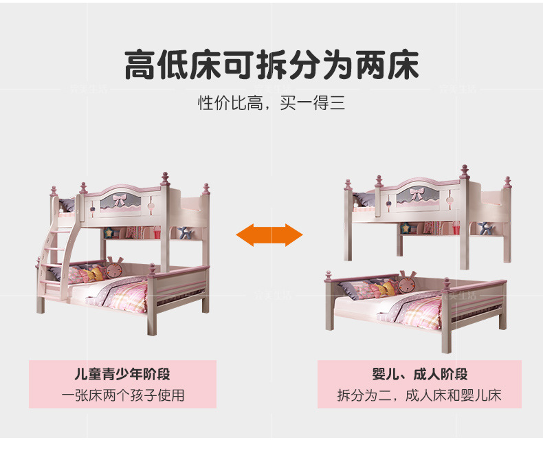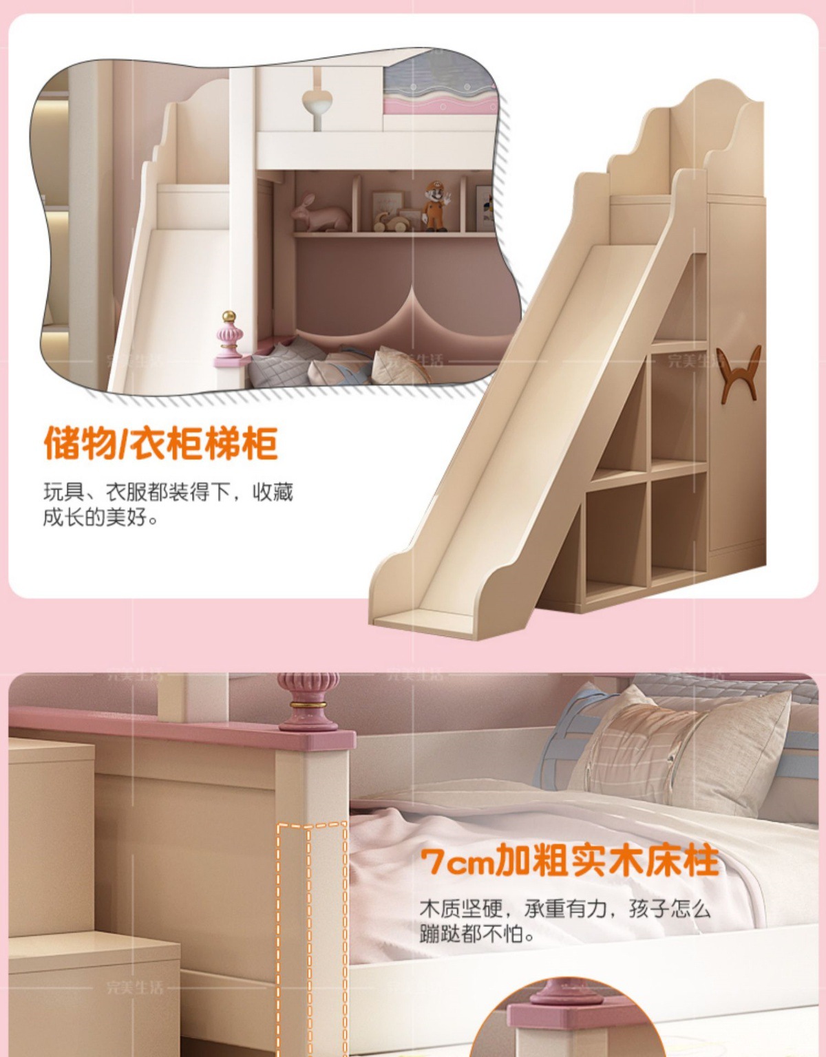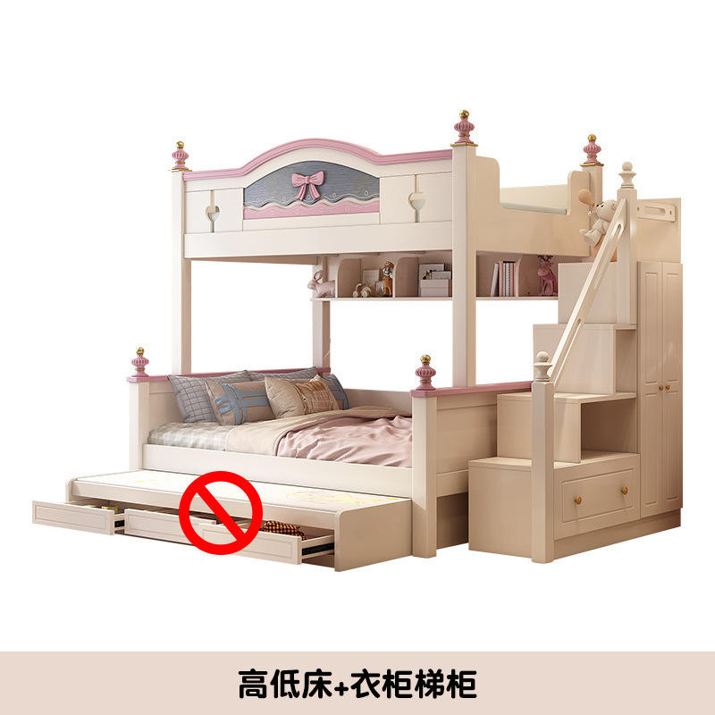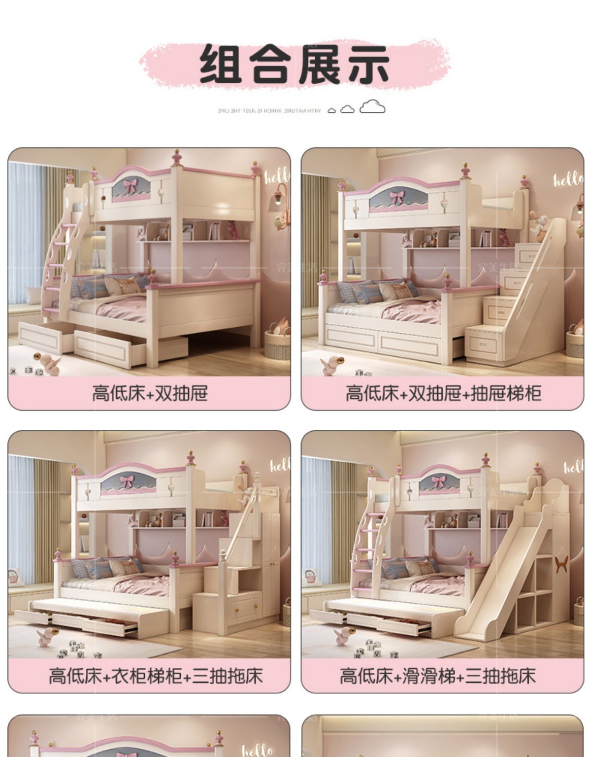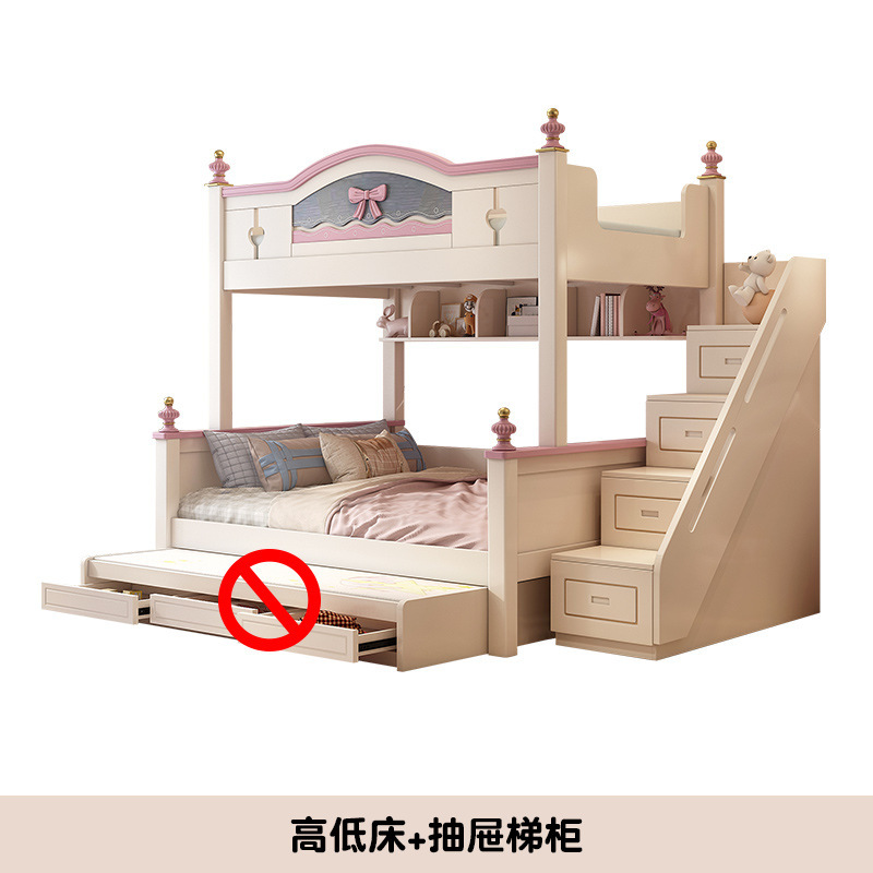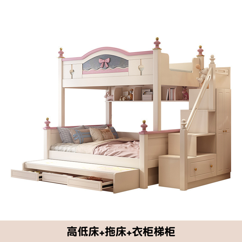 어린이 침대 침대 소녀 공주 침대 높고 낮은 나무 침대 어머니 침대 슬라이드 핑크 다기능 조합 침대스토어 가기
