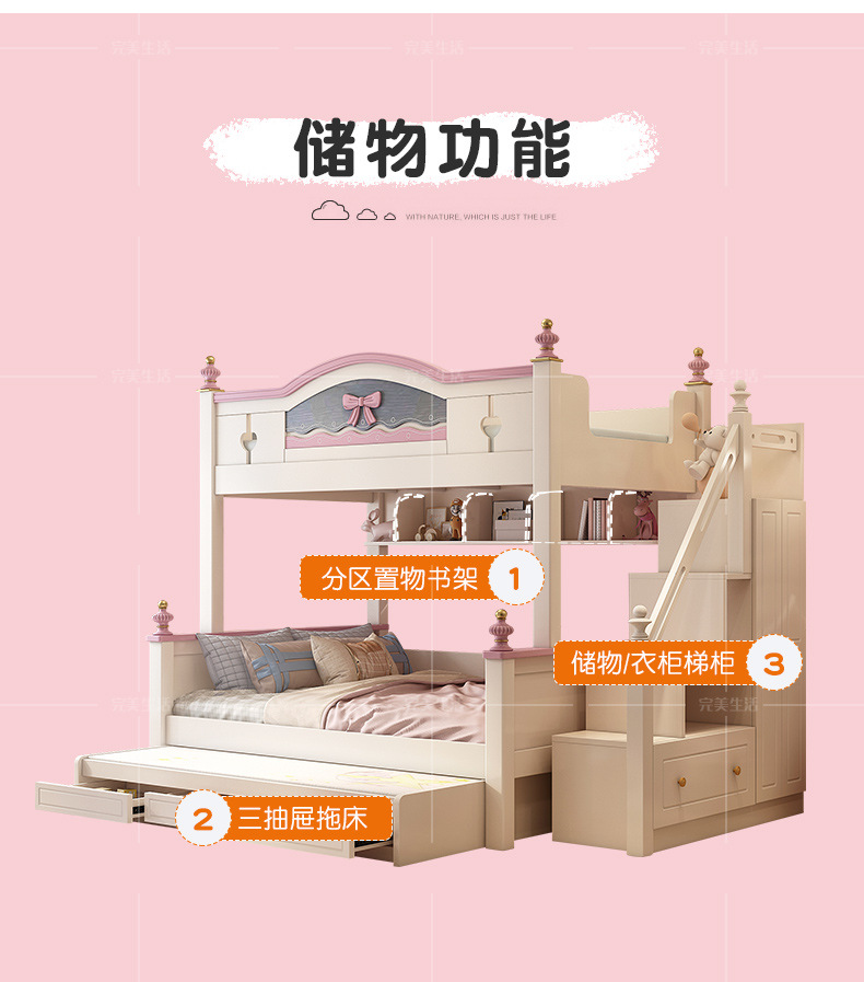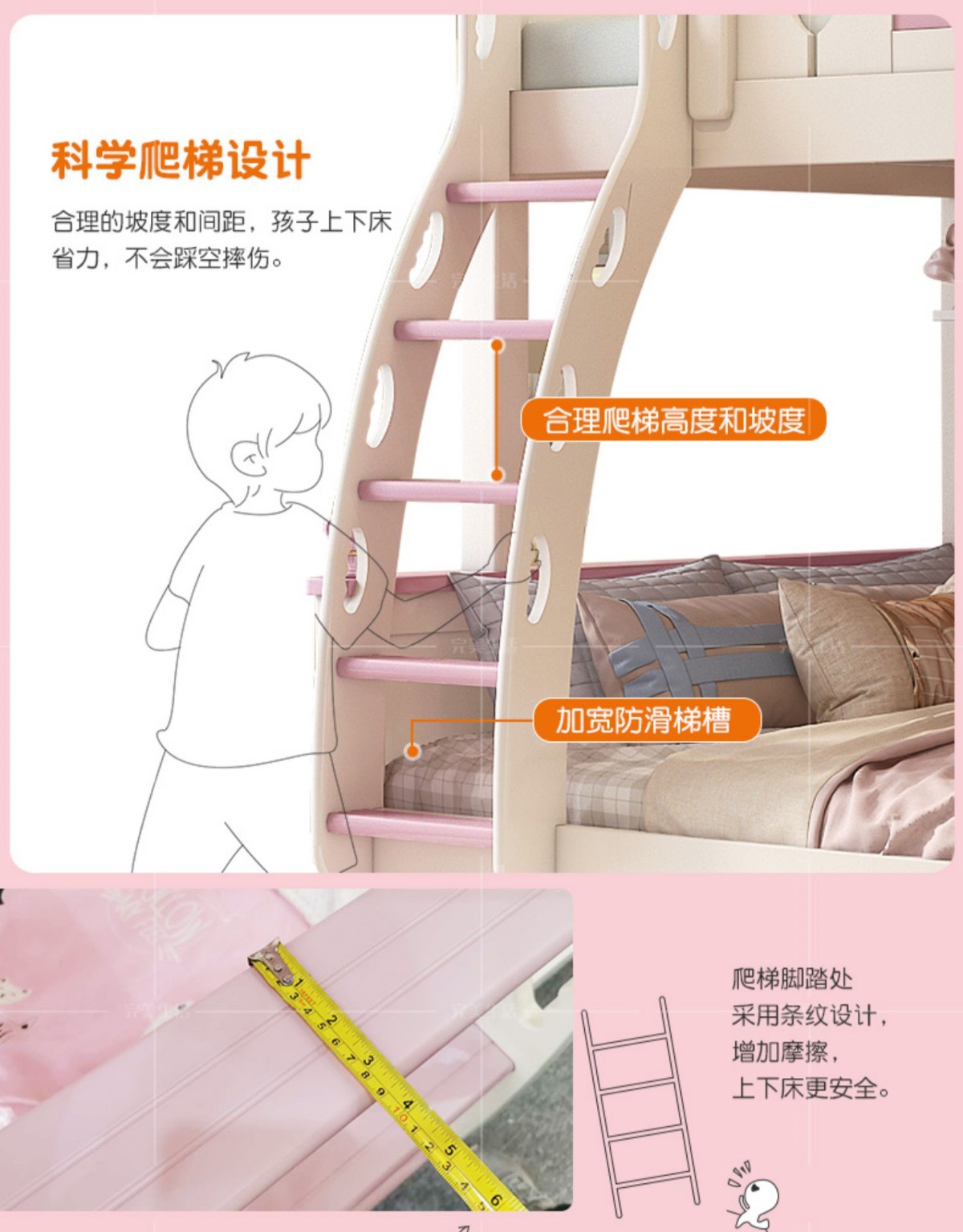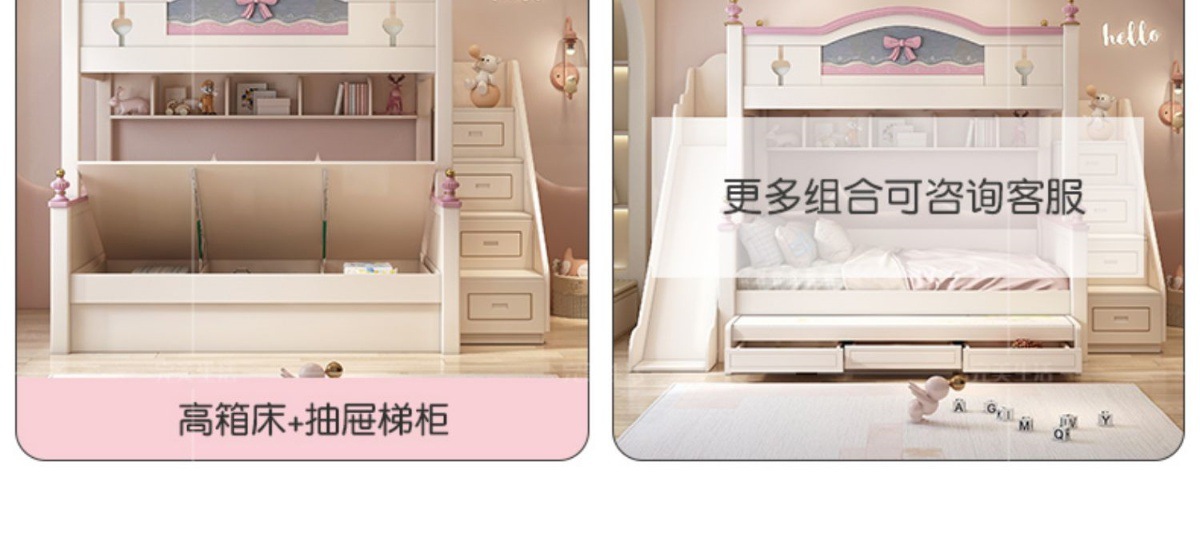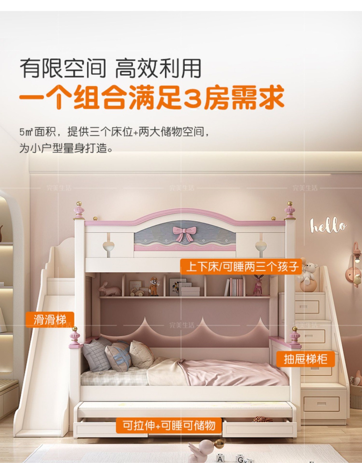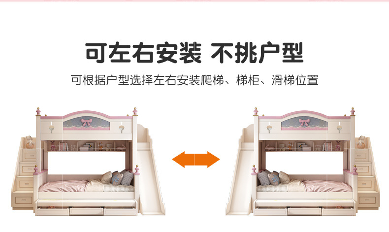 어린이 침대 침대 소녀 공주 침대 높고 낮은 나무 침대 어머니 침대 슬라이드 핑크 다기능 조합 침대스토어 가기