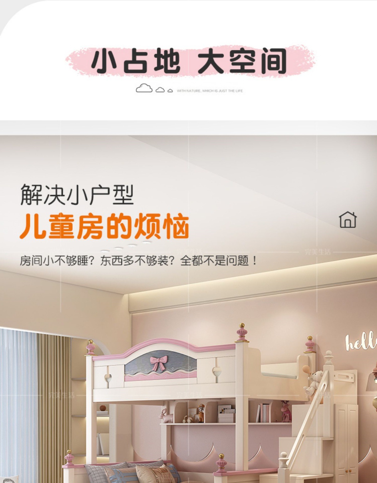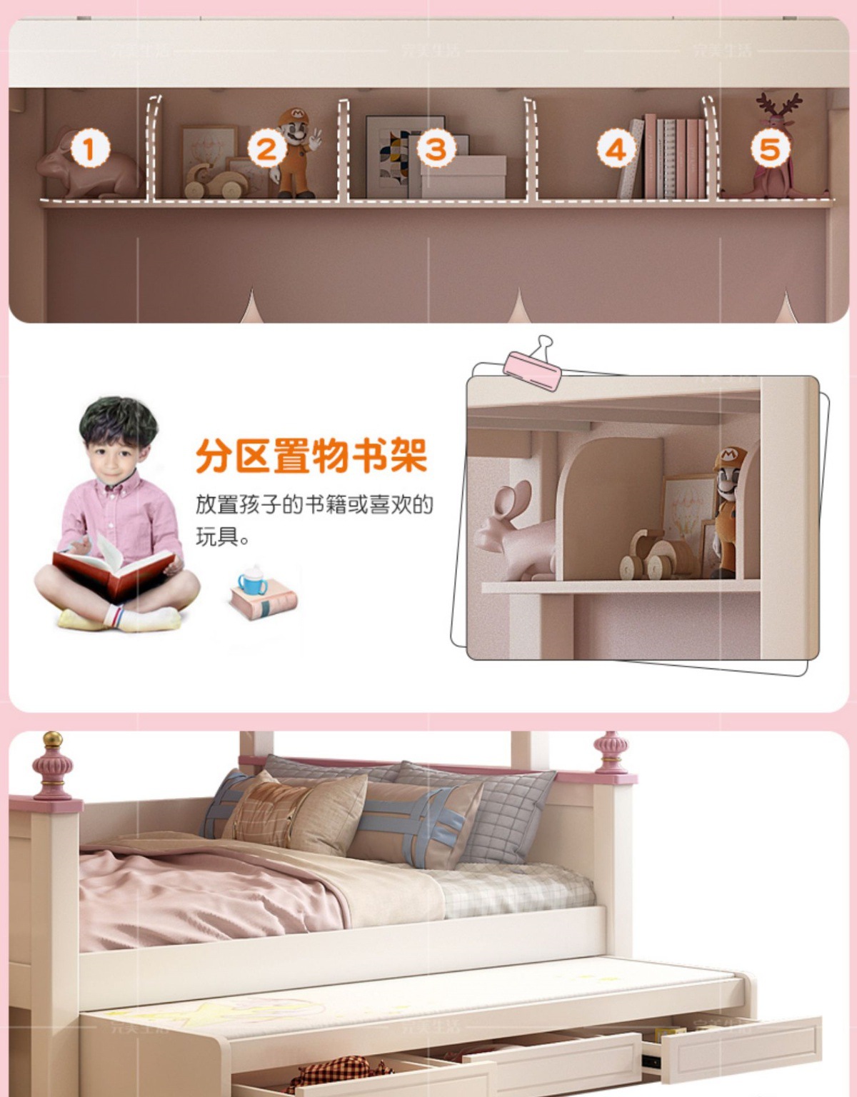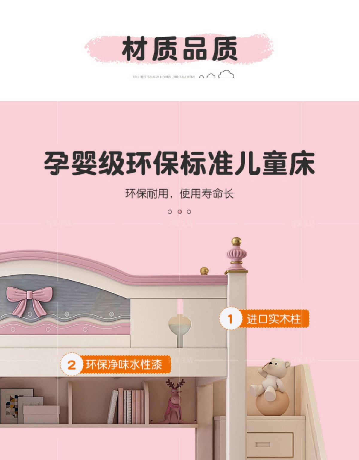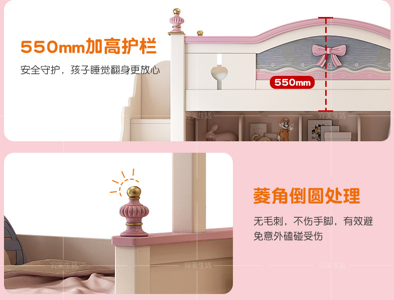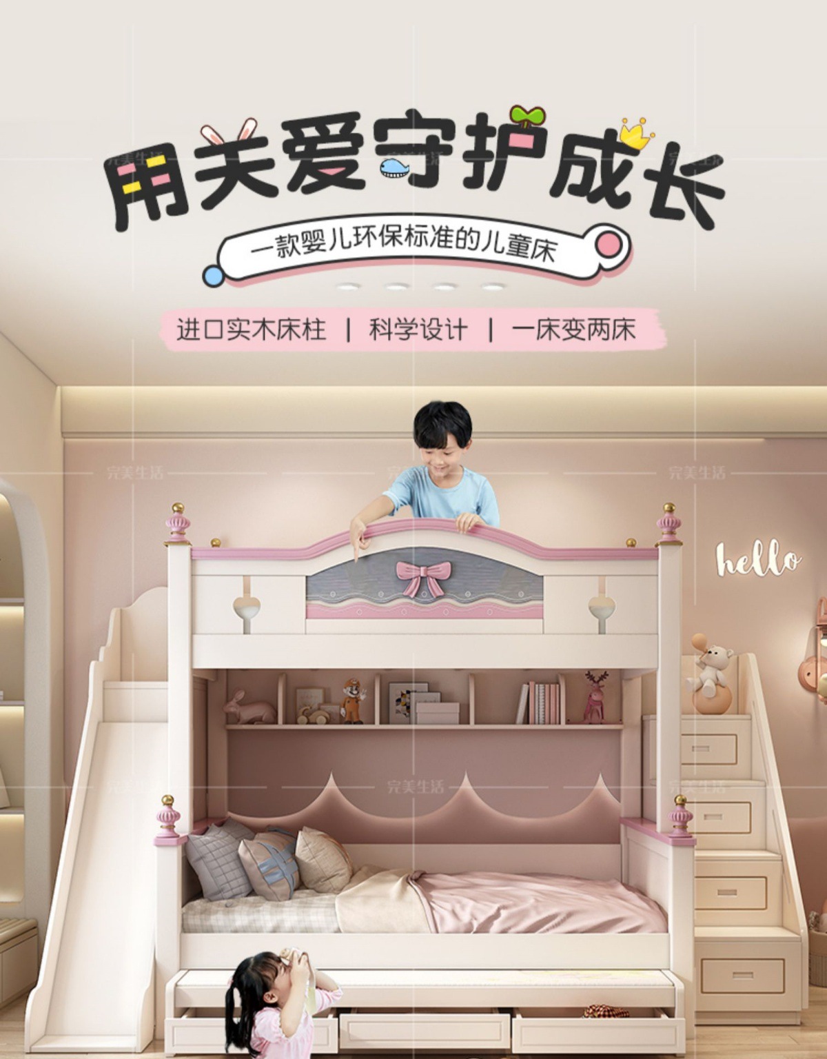 어린이 침대 침대 소녀 공주 침대 높고 낮은 나무 침대 어머니 침대 슬라이드 핑크 다기능 조합 침대스토어 가기