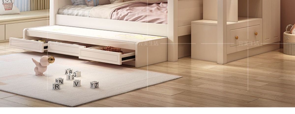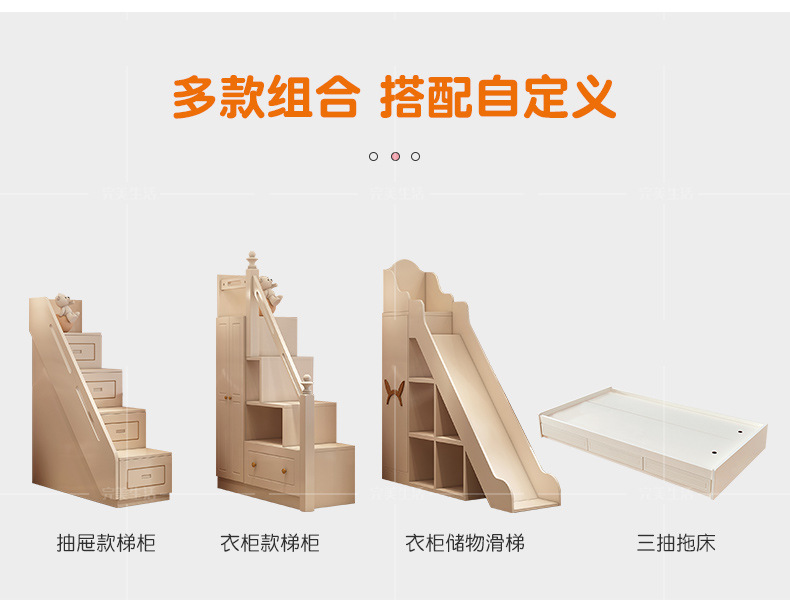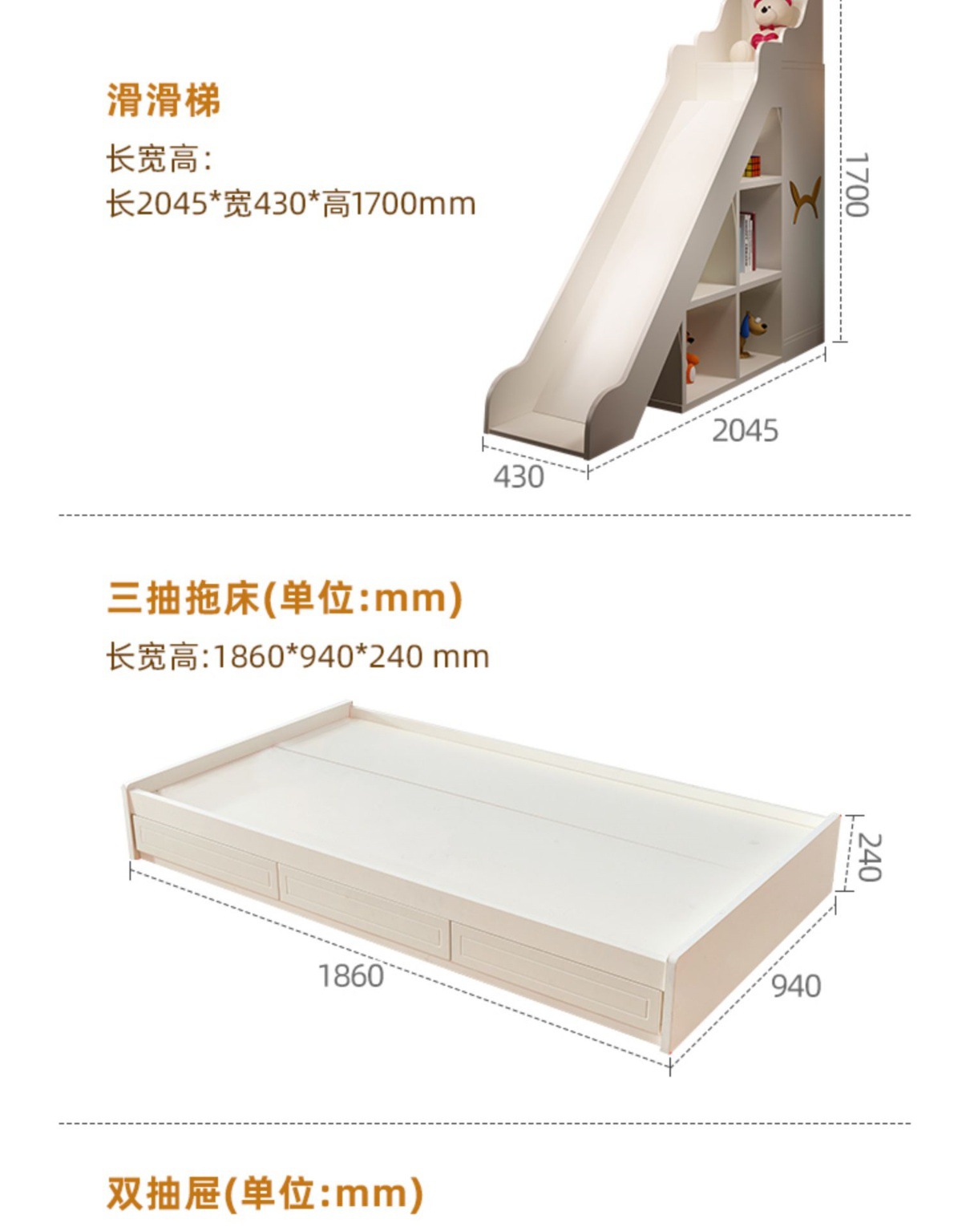• 높고 낮은 침대 + 견인 침대 + 슬라이드 + 서랍 사다리 캐비닛, 무료 상부 및 하부 매트리스 1003