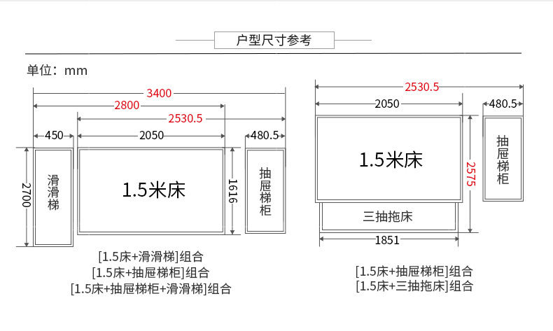 • 높고 낮은 침대 + 견인 침대 + 서랍 사다리 캐비닛, 무료 상부 및 하부 매트리스 1003