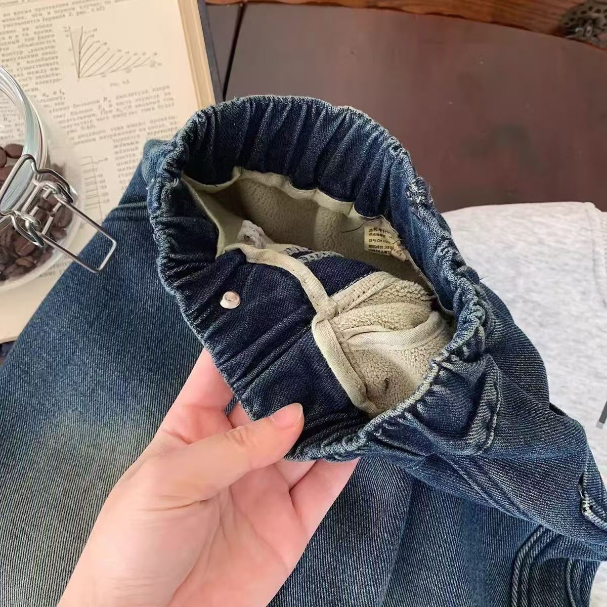 2024 겨울 새 어린이 기모 두껍게 부드러운 어린이 소녀 아기 원피스 벨벳 캐주얼 바지 청바지 조수스토어 가기