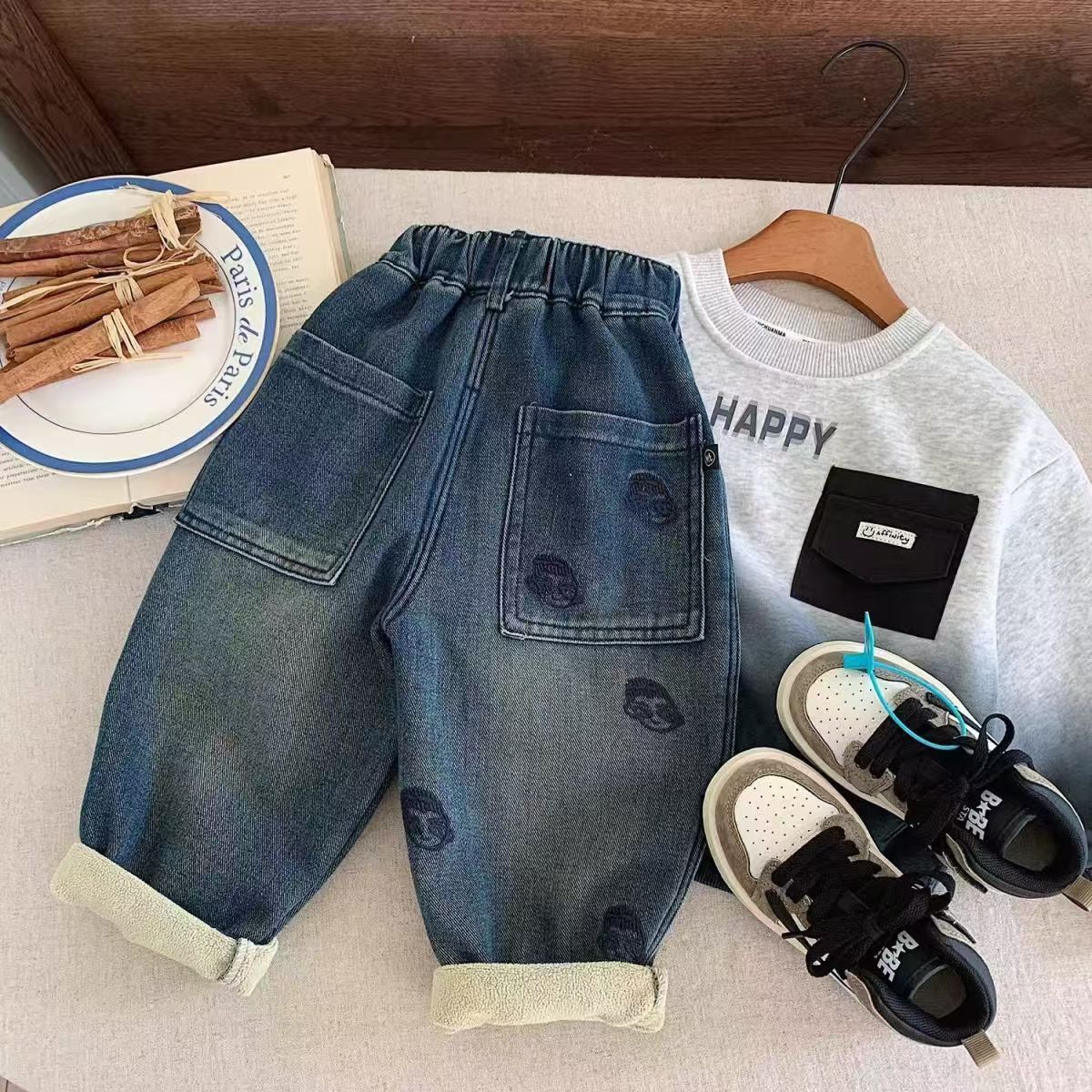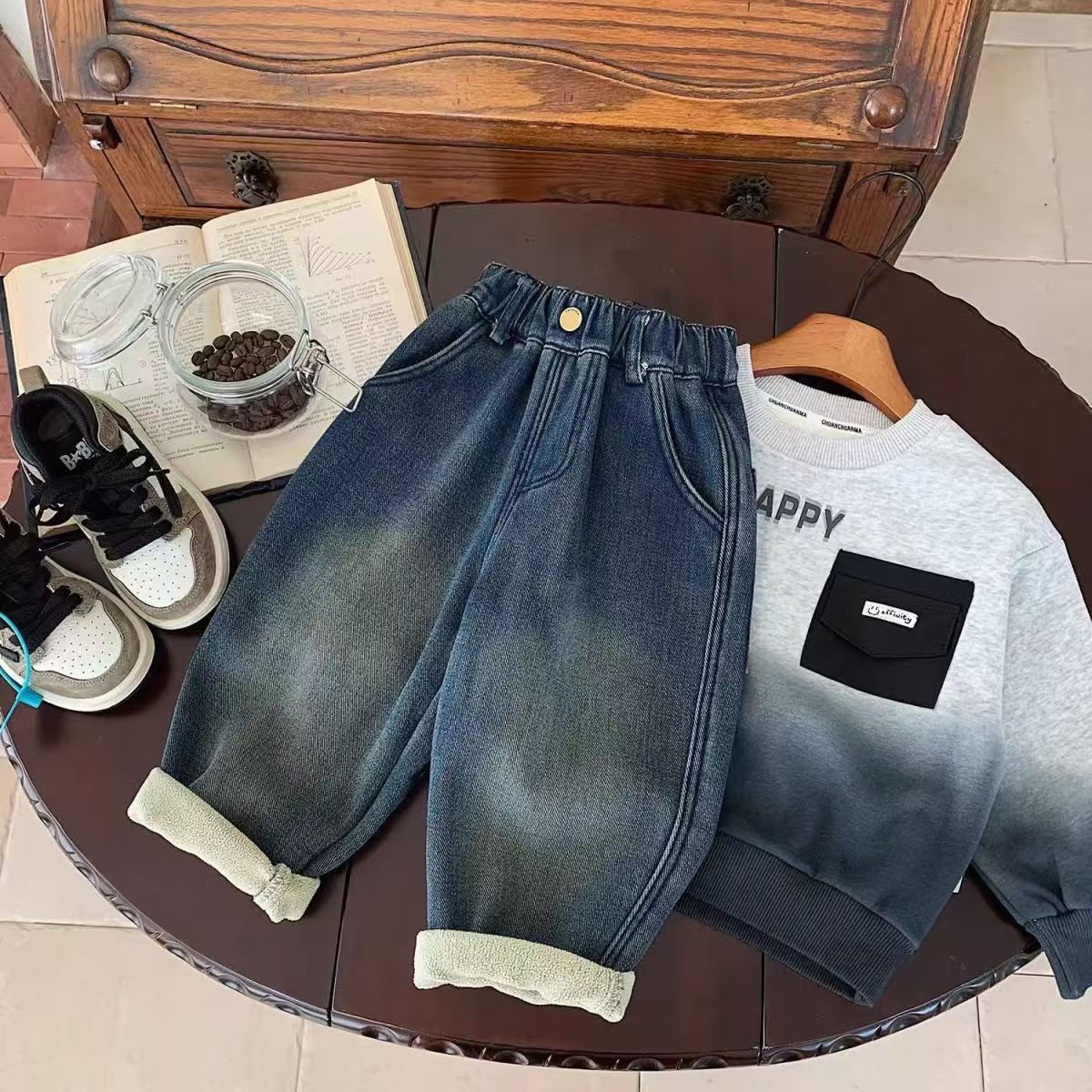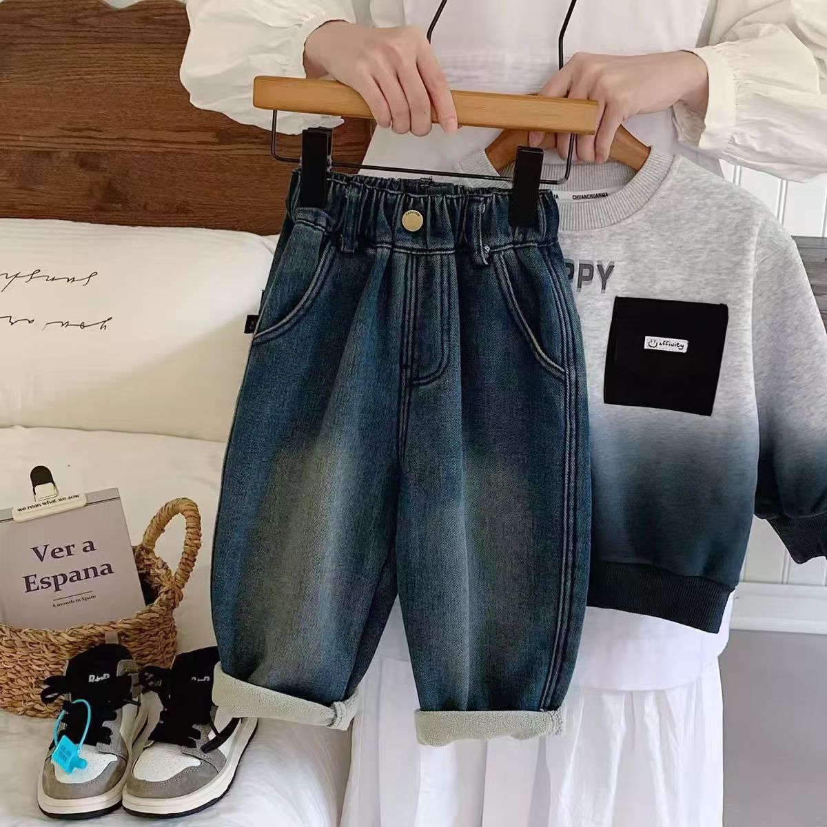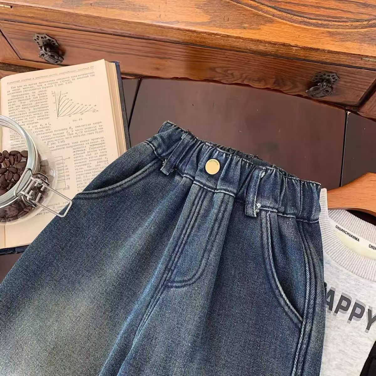 2024 겨울 새 어린이 기모 두껍게 부드러운 어린이 소녀 아기 원피스 벨벳 캐주얼 바지 청바지 조수