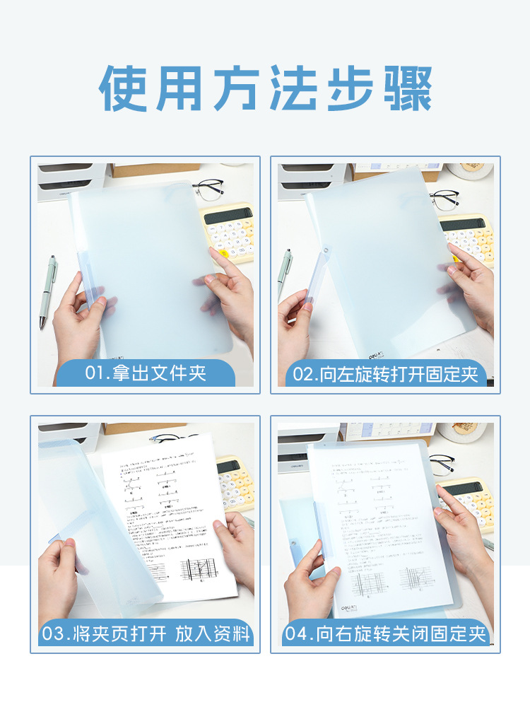 델리 회전로드 클립 A4 투명 삽입 폴더 로드 클립 테스트 종이 클립 초등학교 학생 스토리지 폴더 폴더스토어 가기