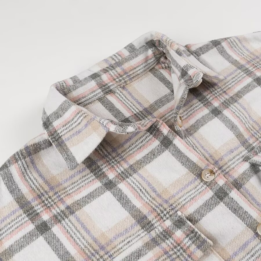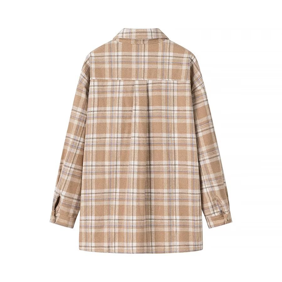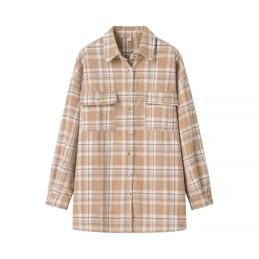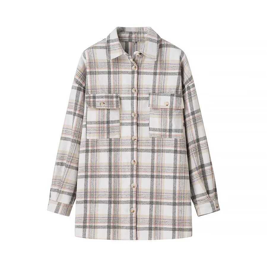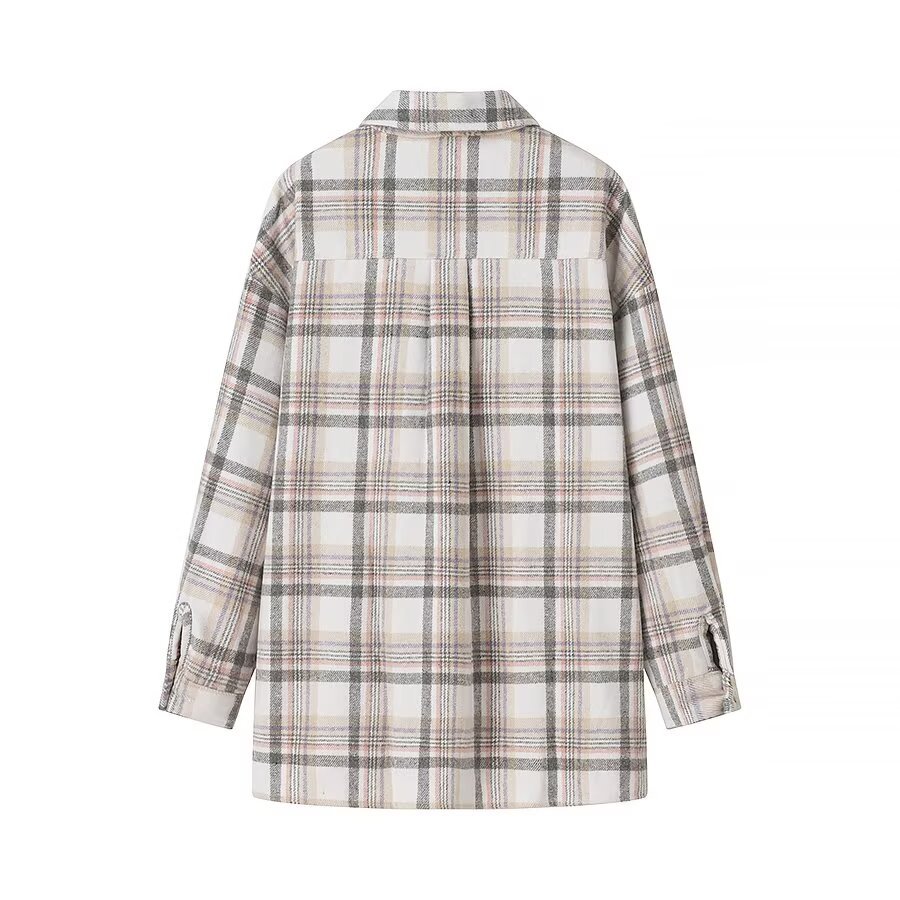 2024 겨울 새로운 유럽과 미국의 국경 여성 스트리트 패션 캐주얼 옷깃 체크 무늬 셔츠 w091 2298