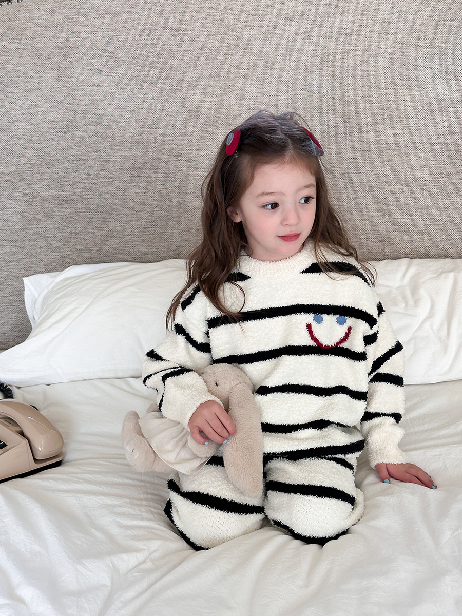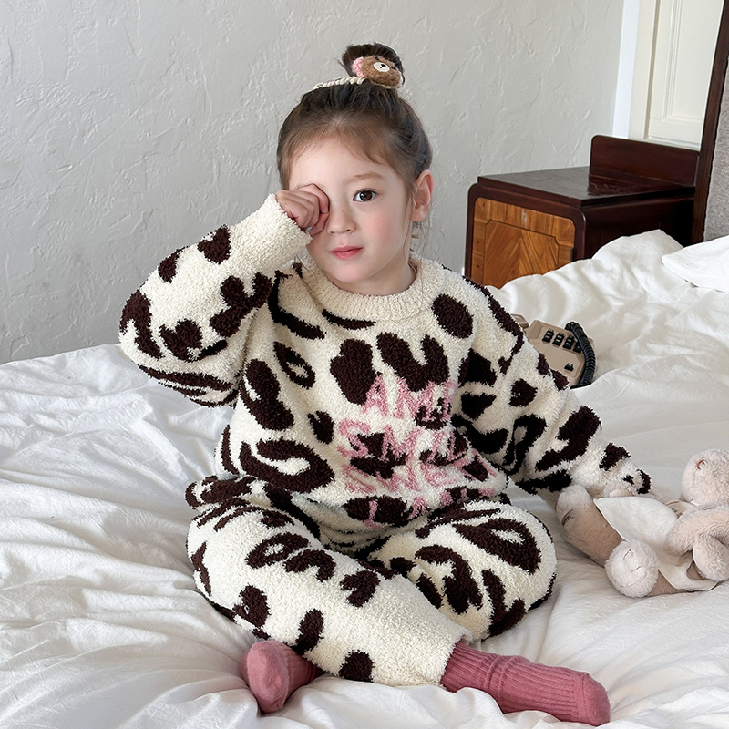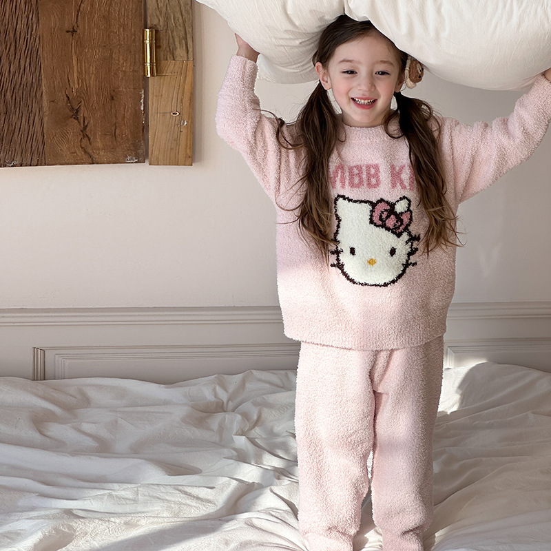 【반양털】아이모베이비 여아용 달콤한 만화풍 귀여운 홈웨어 잠옷 세트