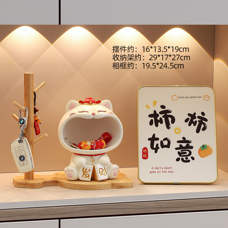 轻奢高档招财猫玄关钥匙收纳摆件乔迁新居客厅装饰品喜庆花艺礼品