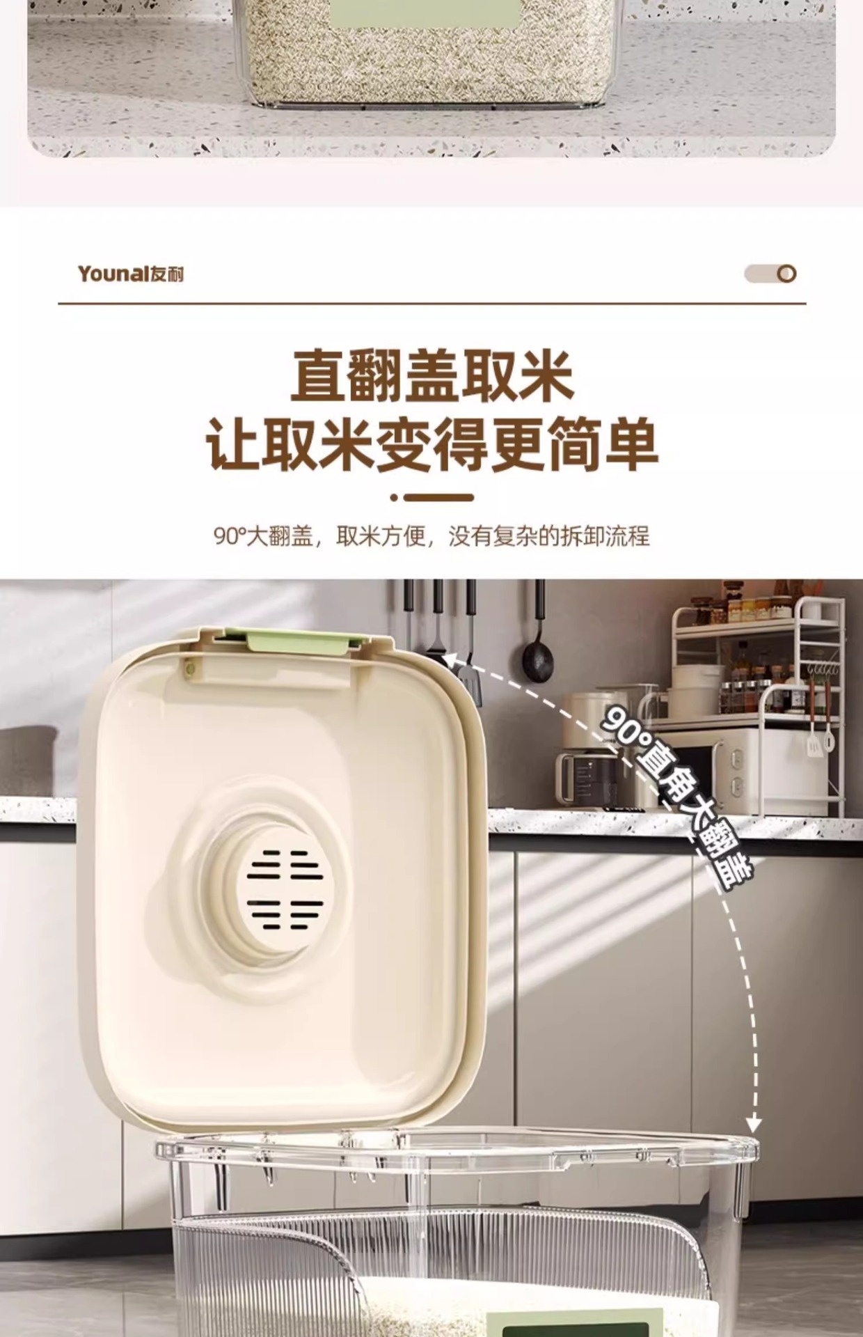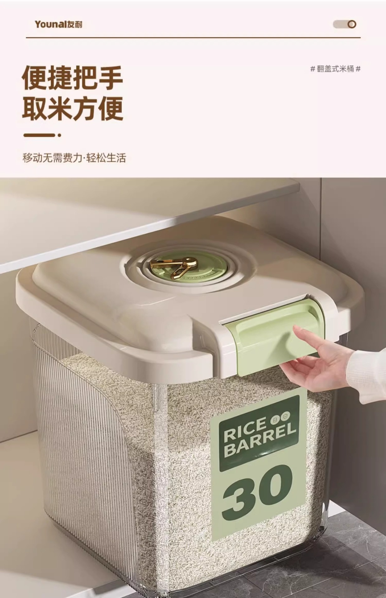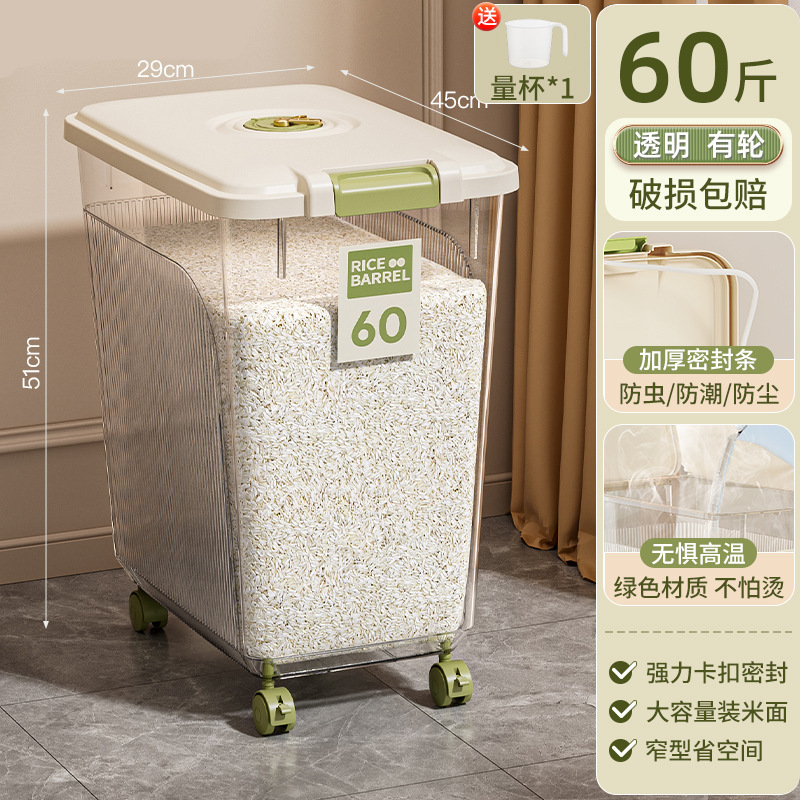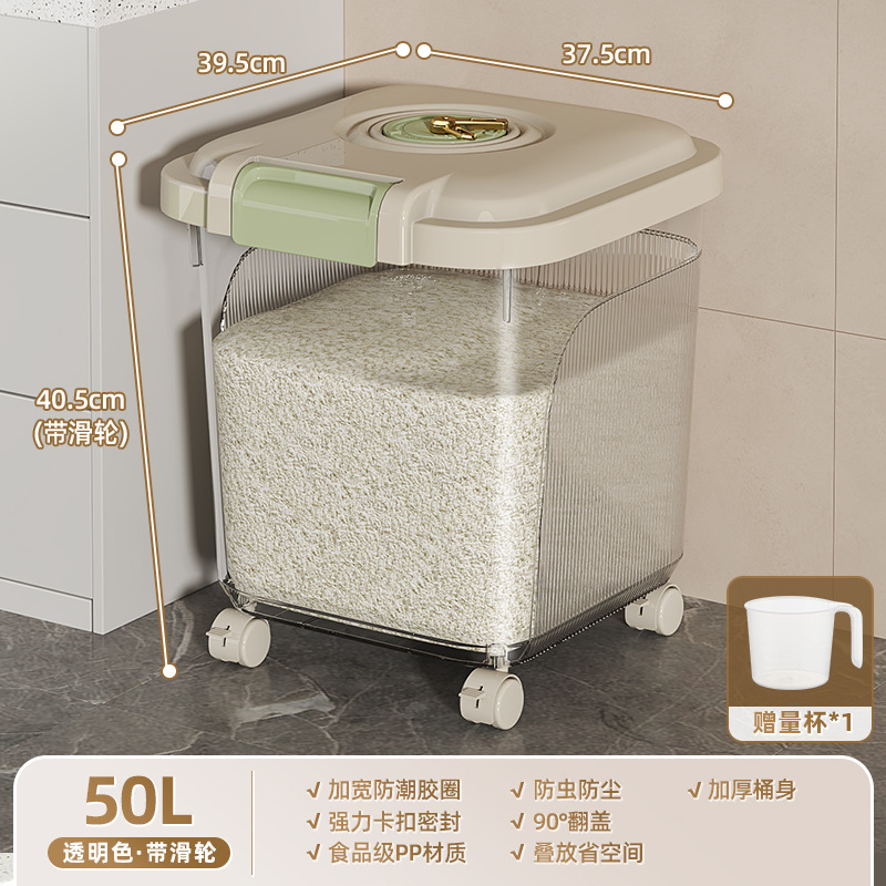 Younai 쌀통 가정용 새로운 25kg 팩 식품 등급 쌀 상자 방충 및 방습 밀봉 곡물 밀가루 저장 쌀 탱크스토어 가기