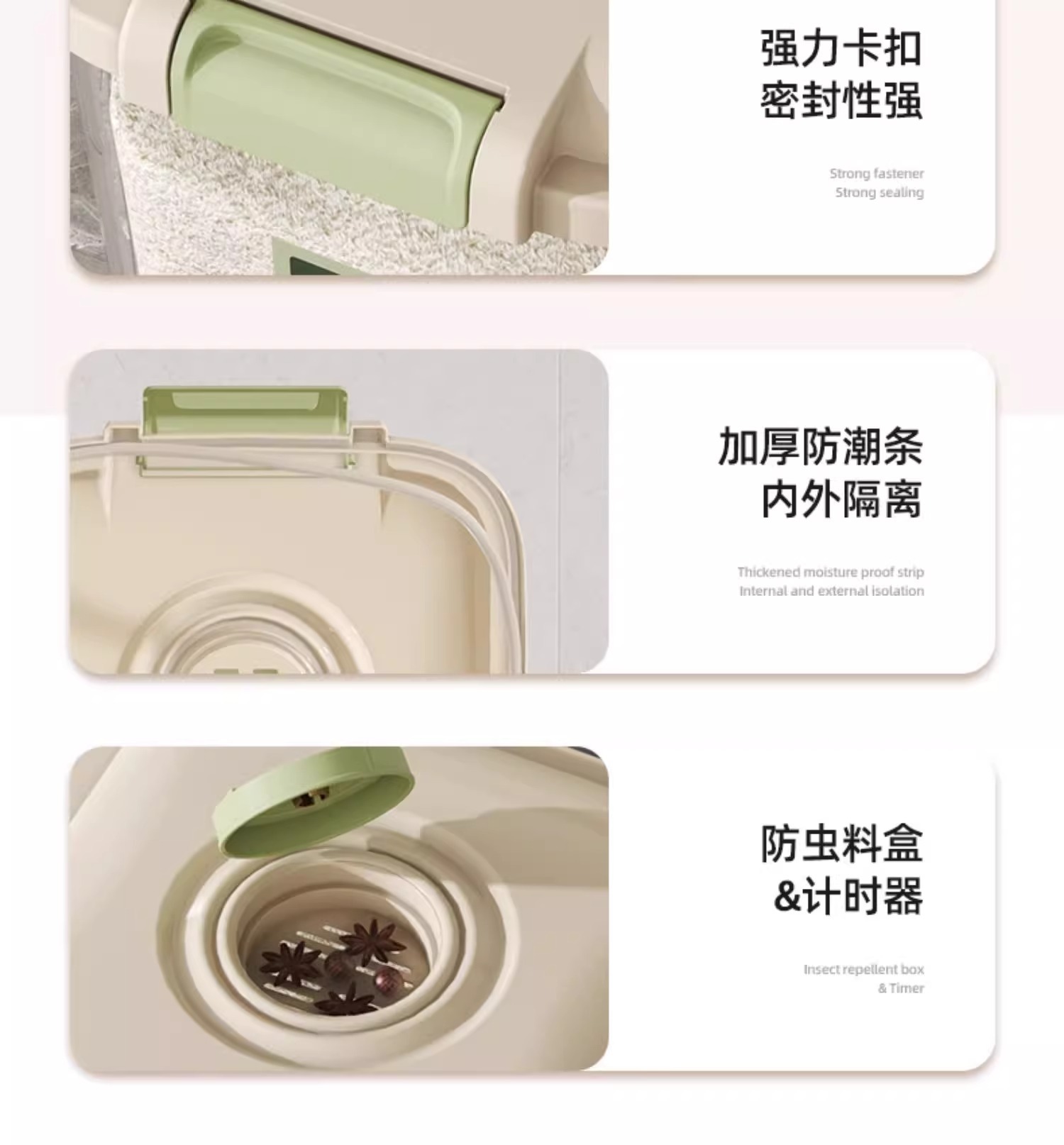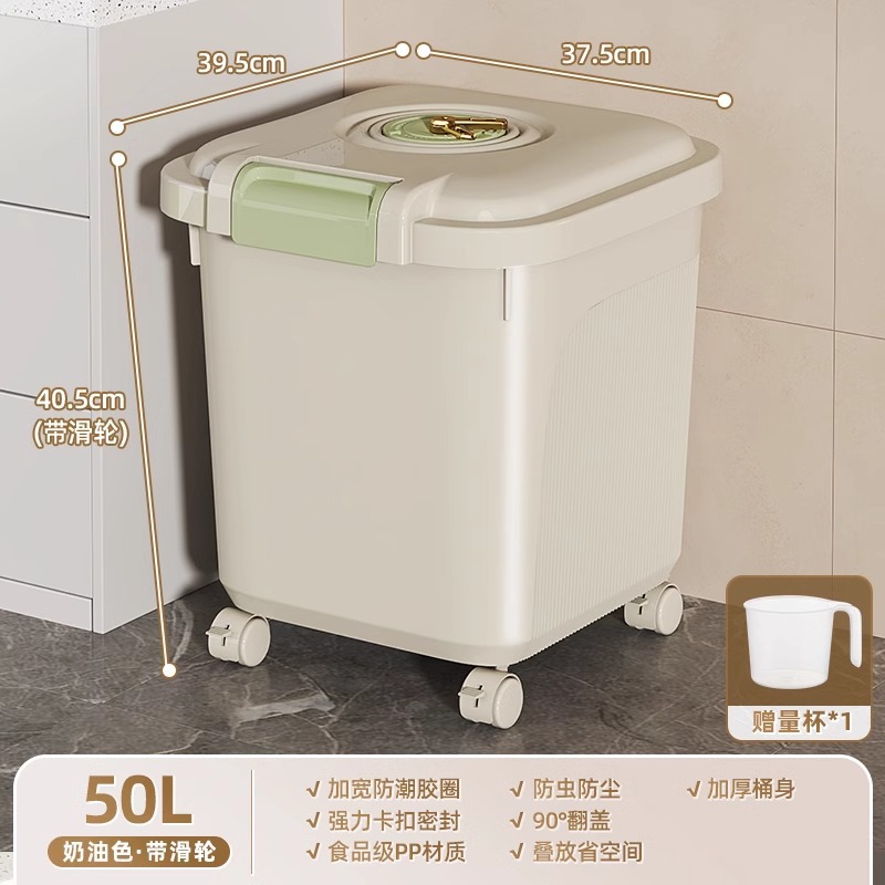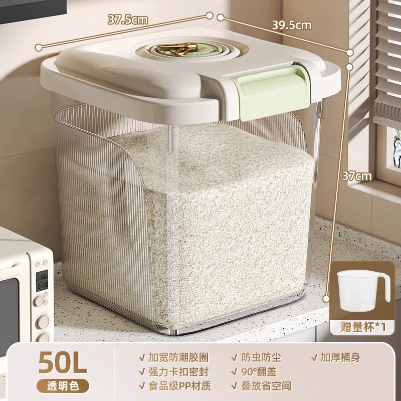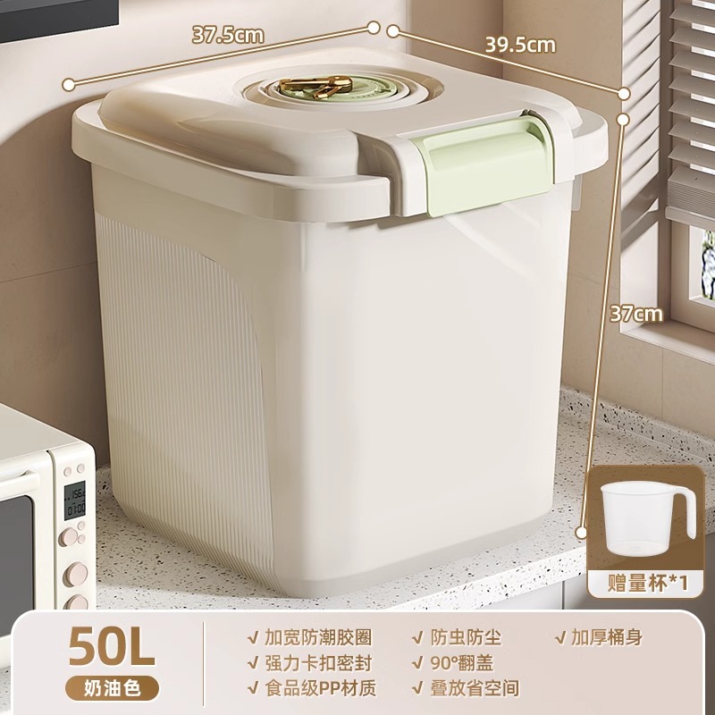 Younai 쌀통 가정용 새로운 25kg 팩 식품 등급 쌀 상자 방충 및 방습 밀봉 곡물 밀가루 저장 쌀 탱크