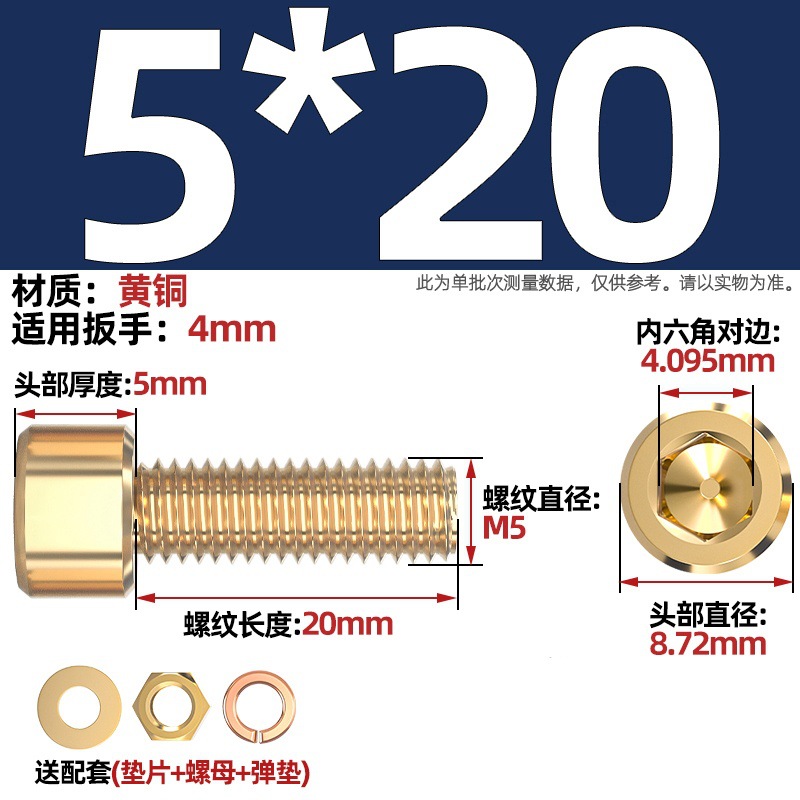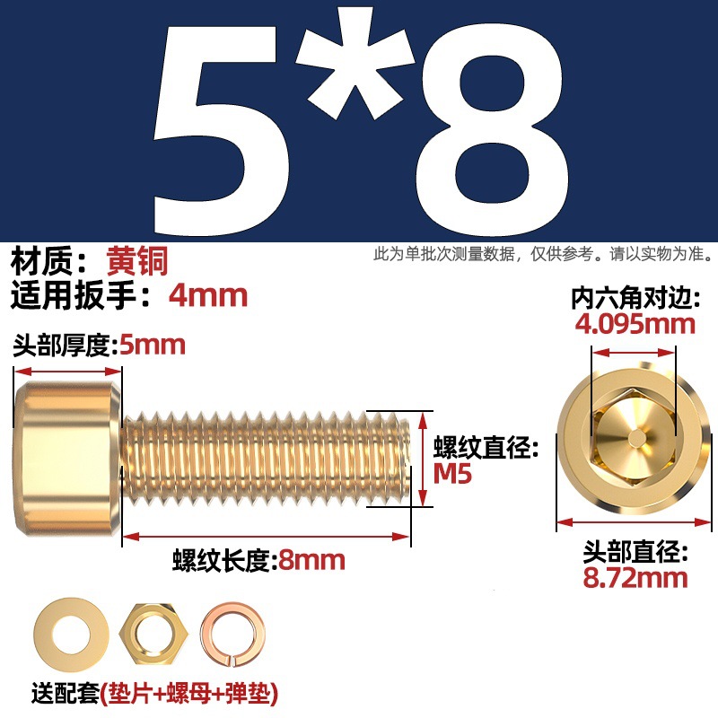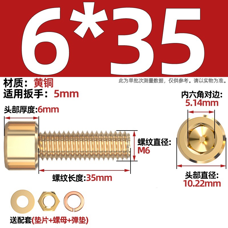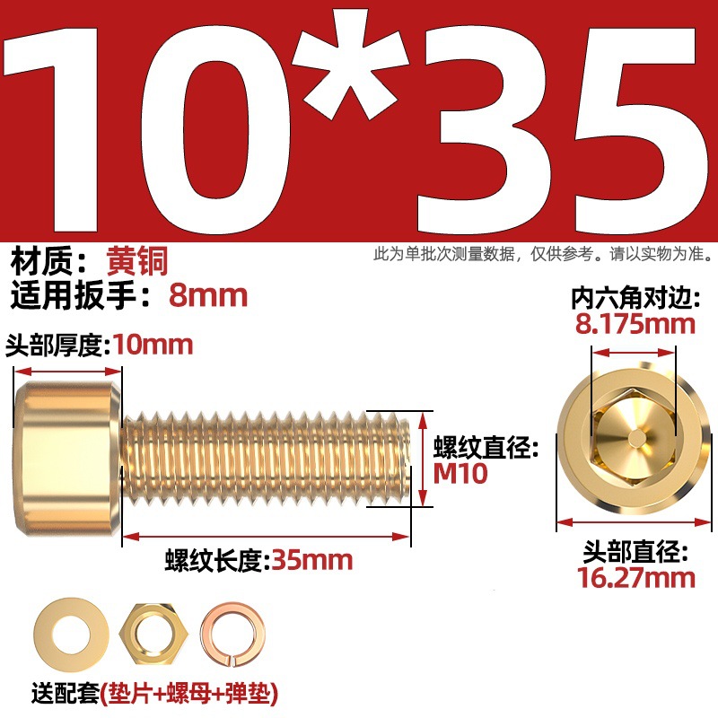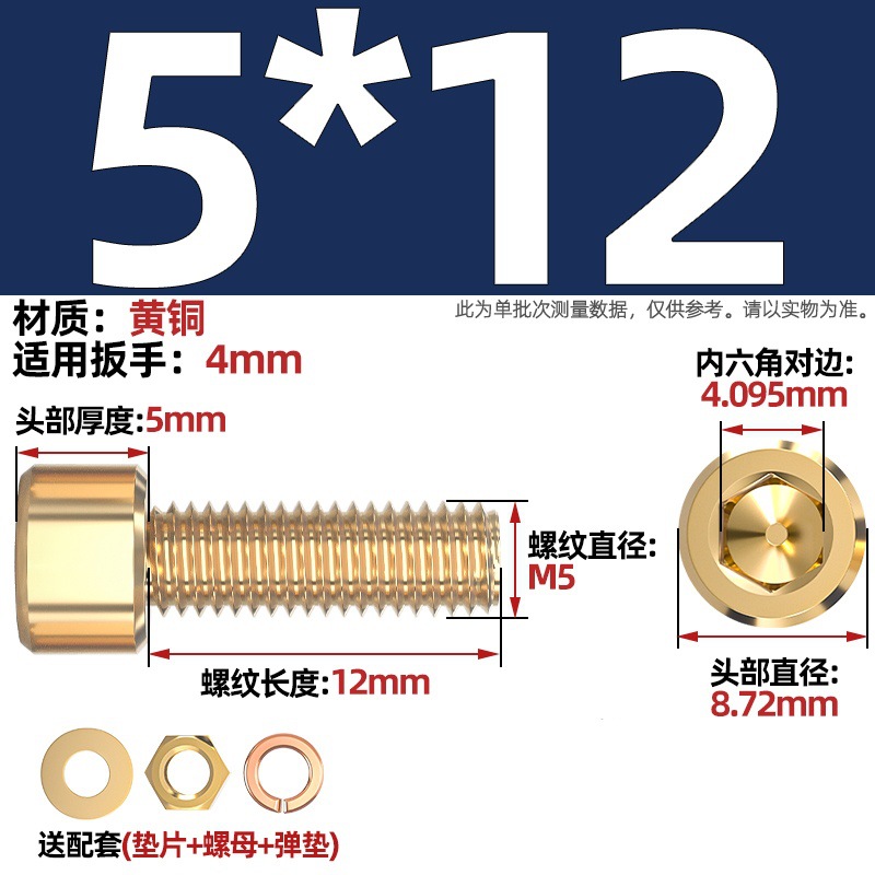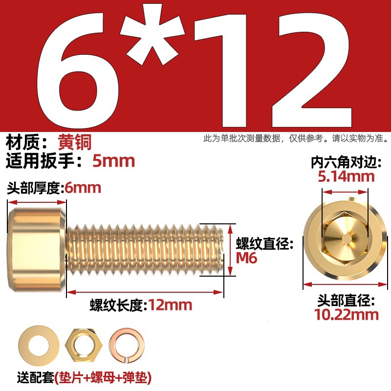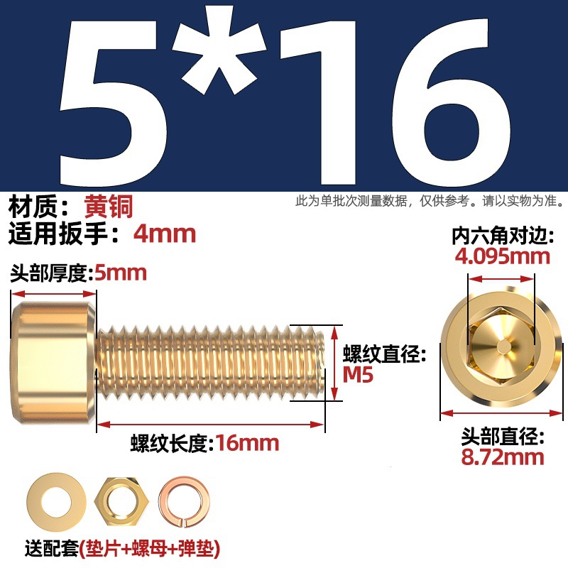 GB 순수 황동 모든 구리 육각형 소켓 스크류 너트 볼트 너트 플랫 패드 탄성 가스켓 와셔 세트