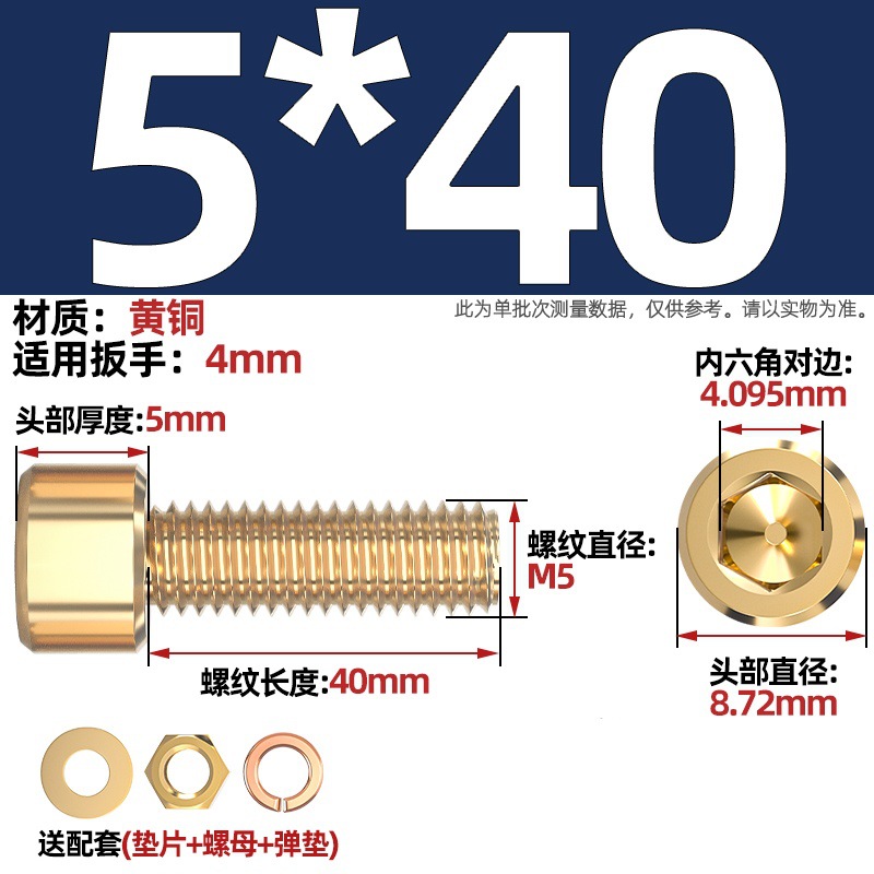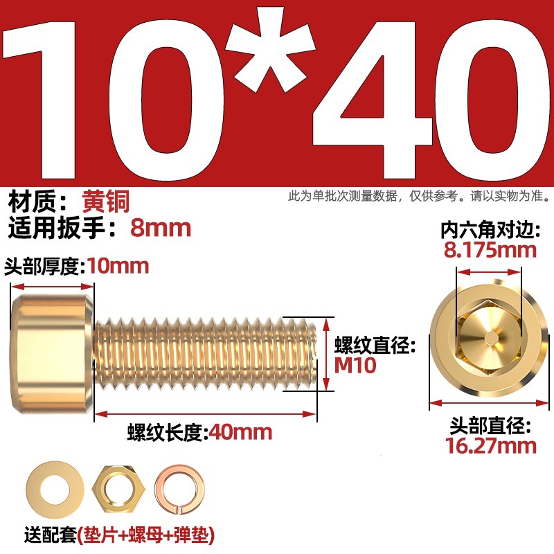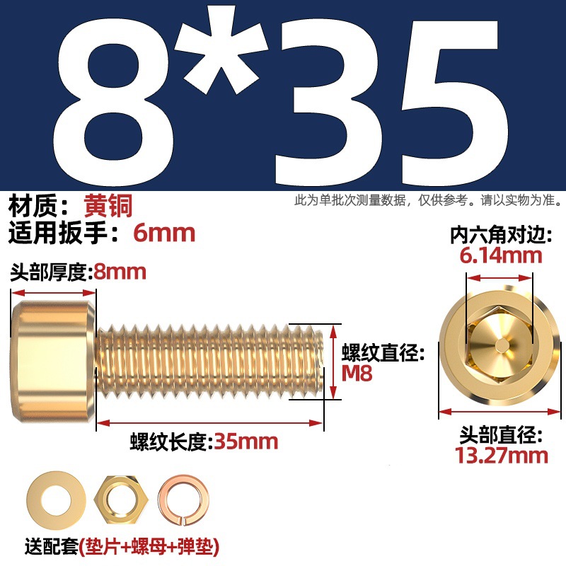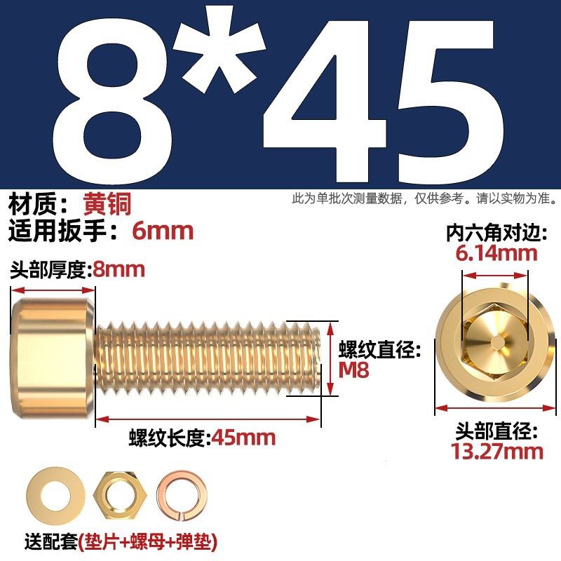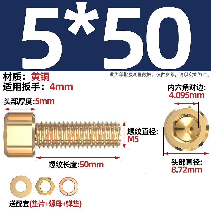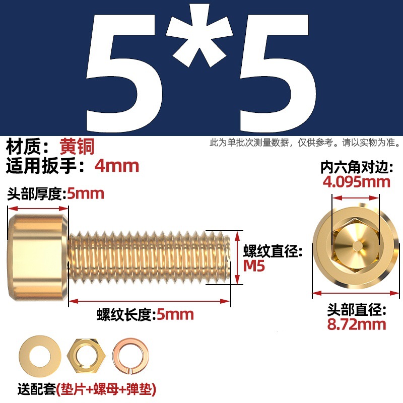 GB 순수 황동 모든 구리 육각형 소켓 스크류 너트 볼트 너트 플랫 패드 탄성 가스켓 와셔 세트