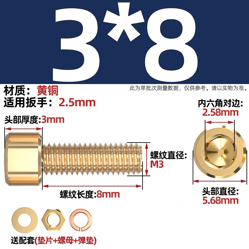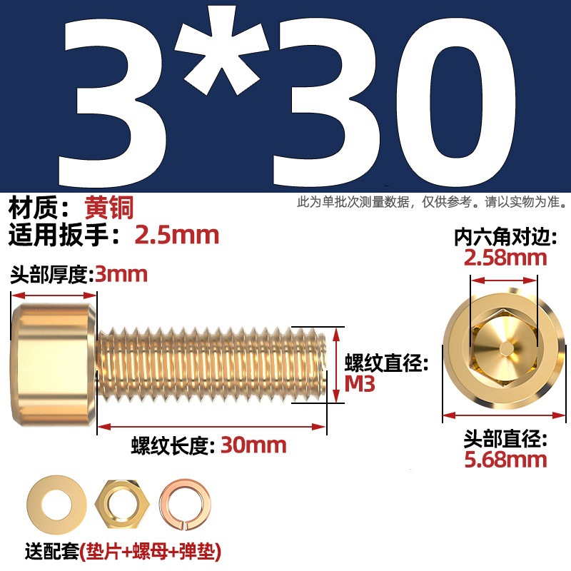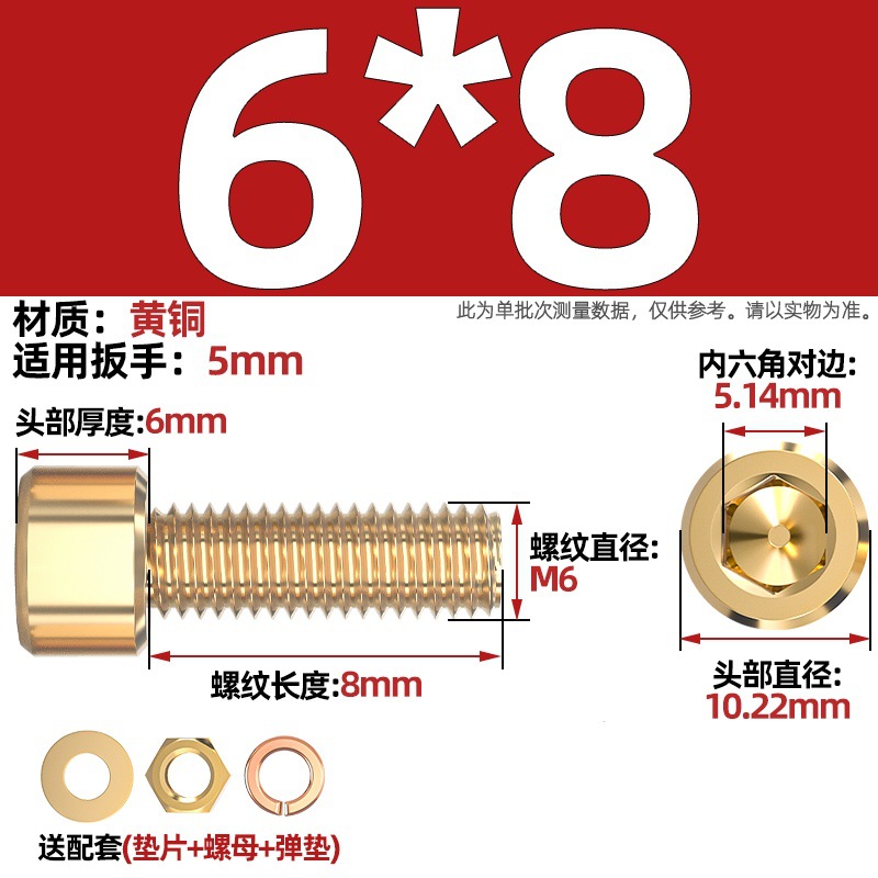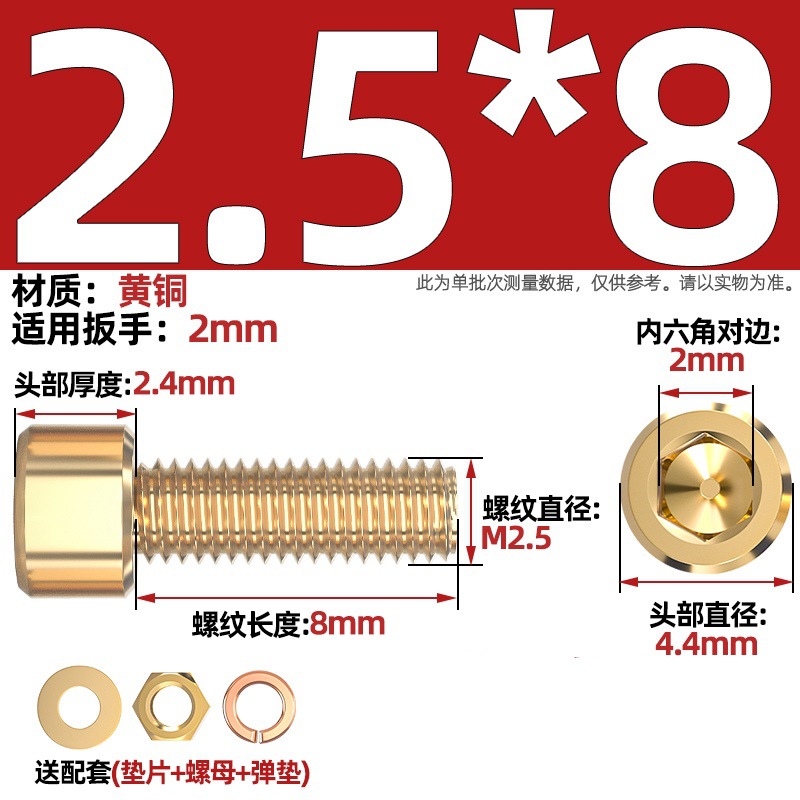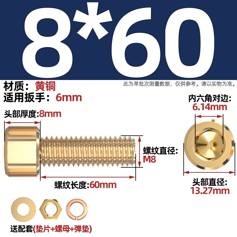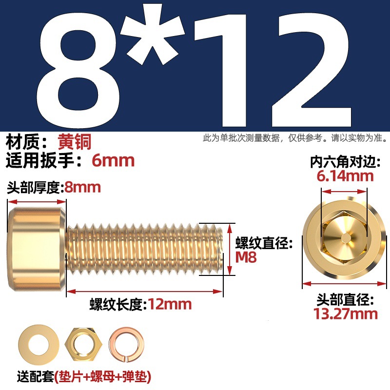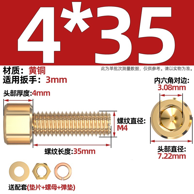 GB 순수 황동 모든 구리 육각형 소켓 스크류 너트 볼트 너트 플랫 패드 탄성 가스켓 와셔 세트