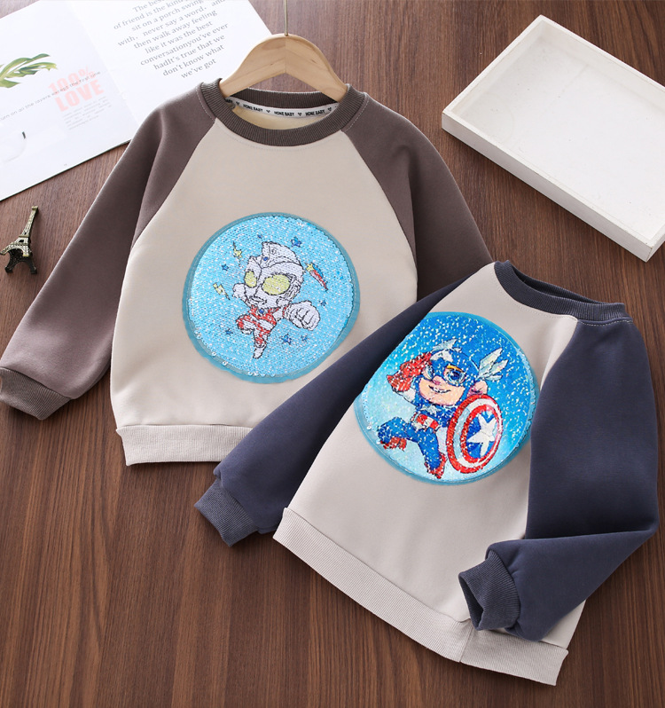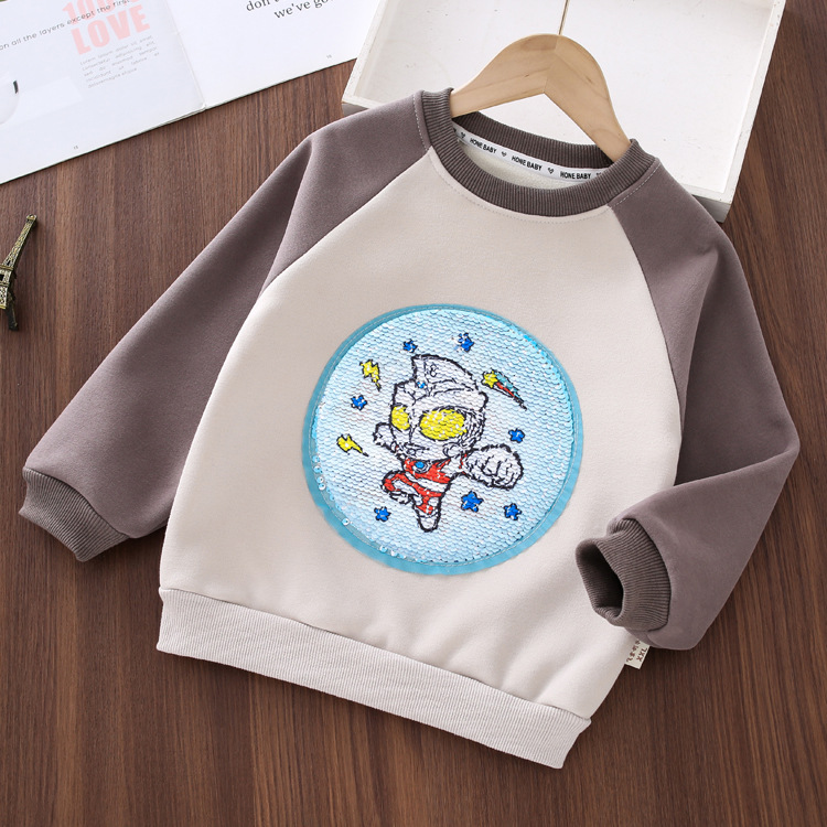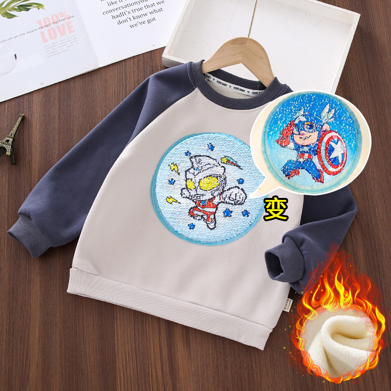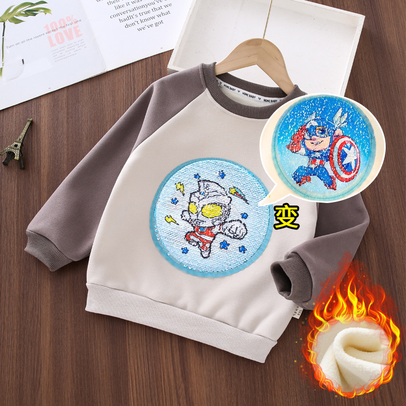남학생 기모 땀 2024 새로운 겨울 어린이 두꺼운 따뜻한 원피스 오스트리아 벨벳 색상 변경 Sequin Top Trendy