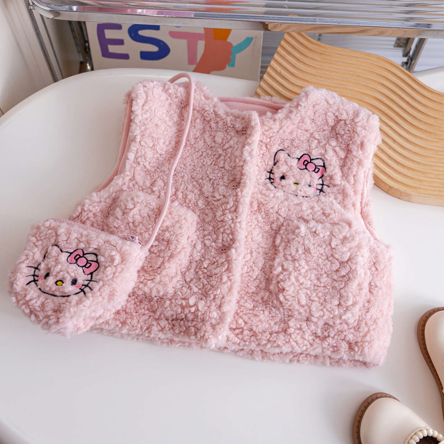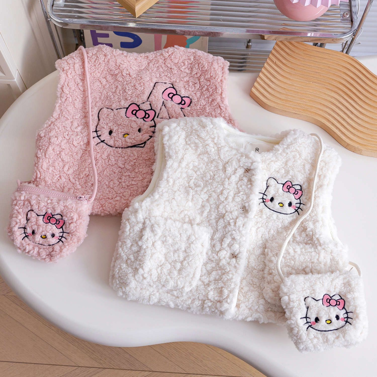 2025 새로운 여자 양고기 벨벳 조끼 가을, 겨울 아기 소녀 겨울 따뜻한 조끼 겉옷 겨울 아동 의류스토어 가기