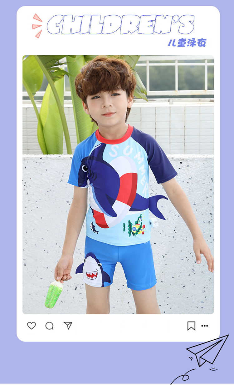 만화 상어 어린이 수영복 소년 수영 트렁크 중형 어린이 분할 수영복 귀여운 작은 소년 아기 수영복스토어 가기