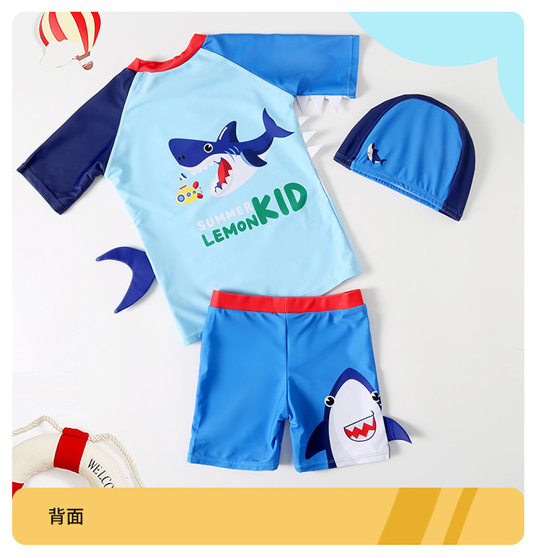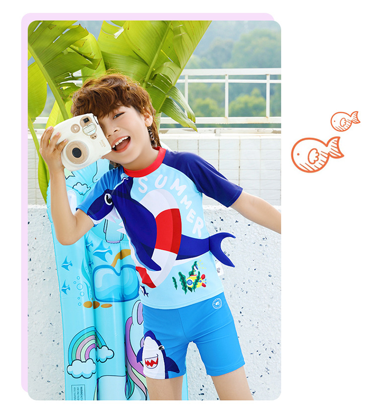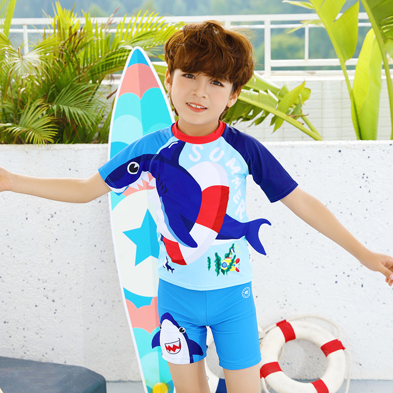 만화 상어 어린이 수영복 소년 수영 트렁크 중형 어린이 분할 수영복 귀여운 작은 소년 아기 수영복
