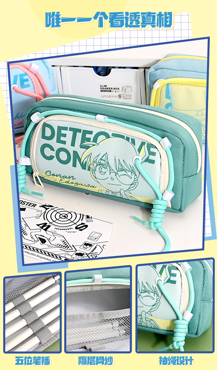 정품 코난 콜라보 문구 가방 중학생용 신형 문구 가방 2차원 초등학생용 대용량 오염 방지 필통