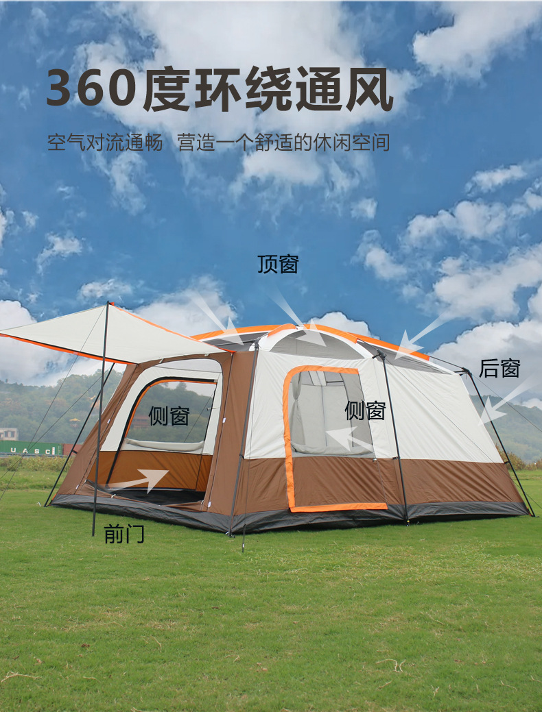 두 개의 방과 하나의 거실이 있는 두꺼워지고 확장된 캠핑 텐트, 휴대용 접이식 야외 캠핑 낚시 안뜰 텐트를 공장에서 직접 공급합니다.