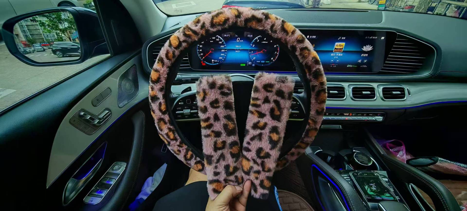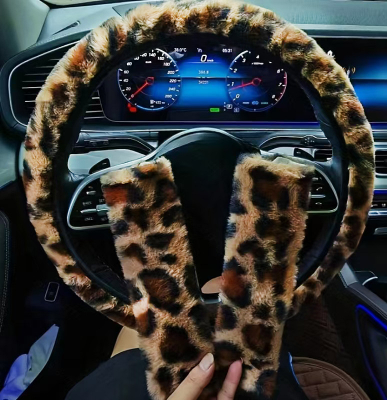 • 레오파드 핑크 내부 링이 없는 스티어링 휠 커버