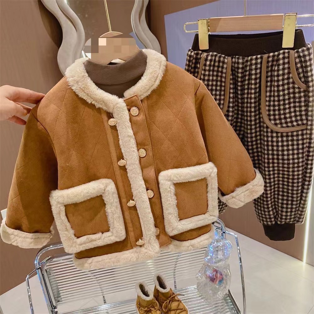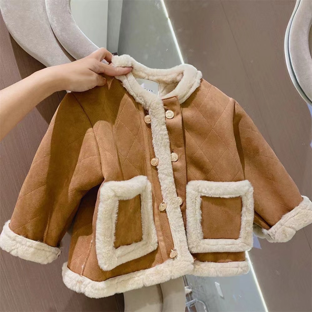 어린이 의류 소녀 겨울 2024 새로운 서양식 아기 소녀 기모 두꺼운 코트 겨울 어린이 짧은 코트