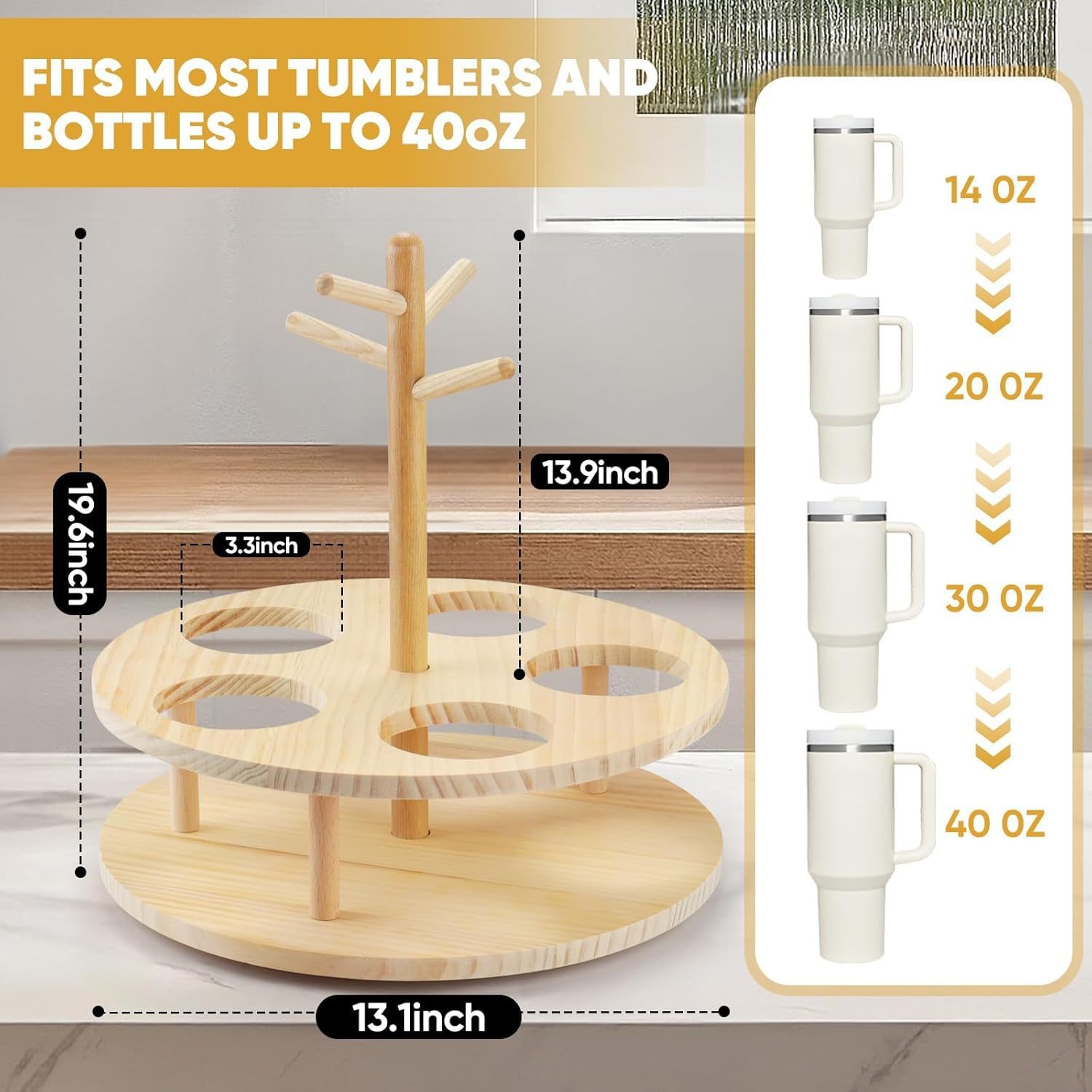 주방 데스크탑 물 컵 저장 나무 랙을 위한 부엌 저장을위한 후크 저장 랙을 가진 나무 컵 홀더 나무 선반스토어 가기
