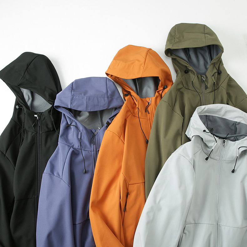 야외 후드 소프트 쉘 재킷 남성과 여성을위한 싱글 레이어 기모 방수 방풍 따뜻한 등산 재킷 탑
