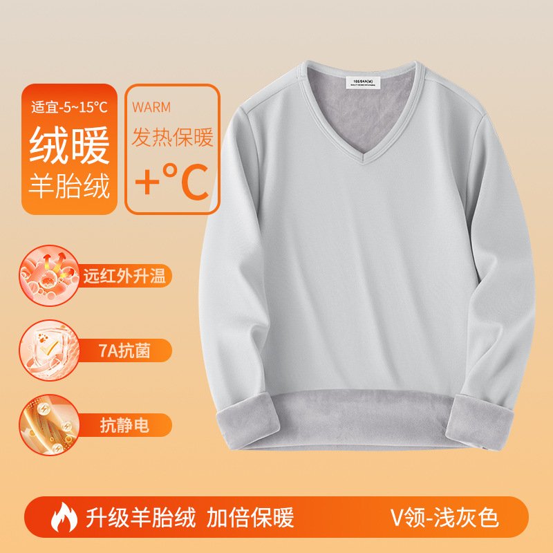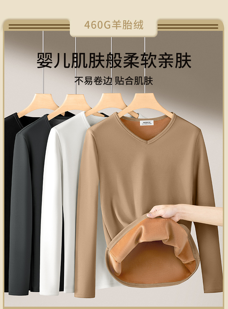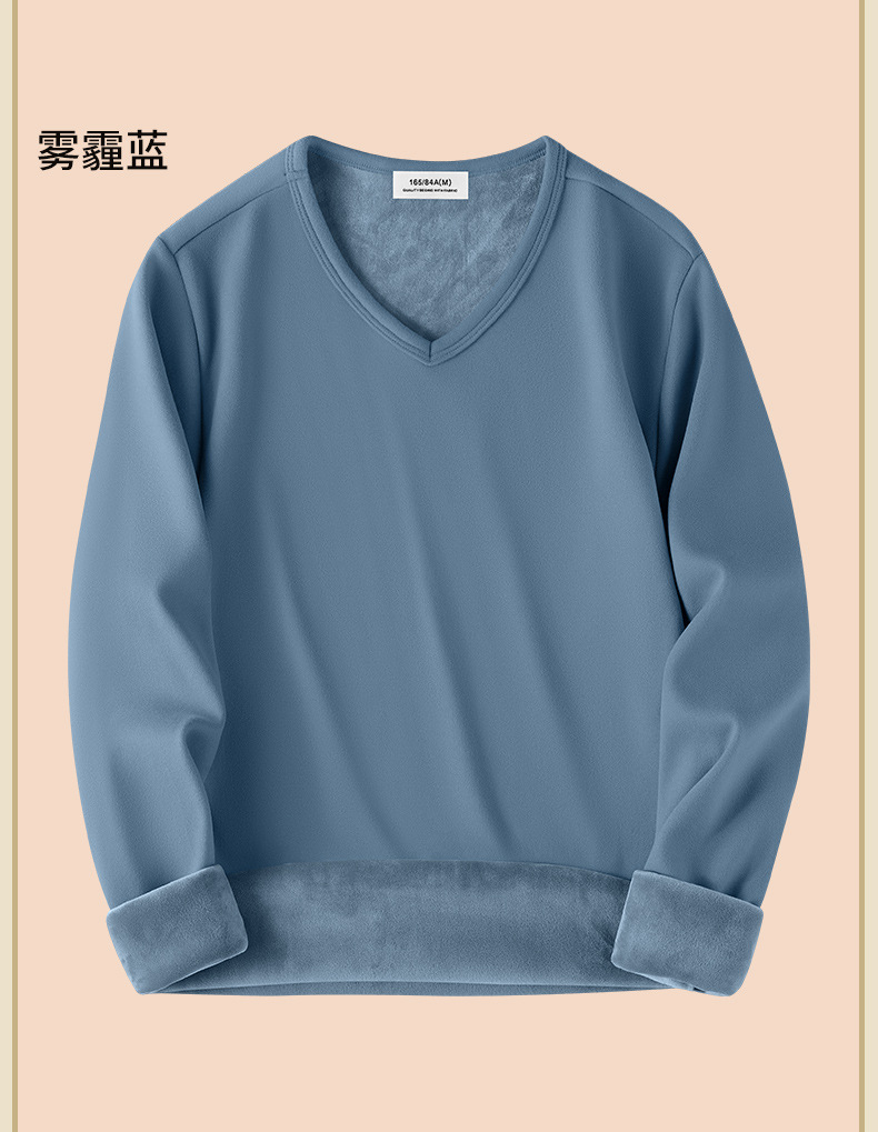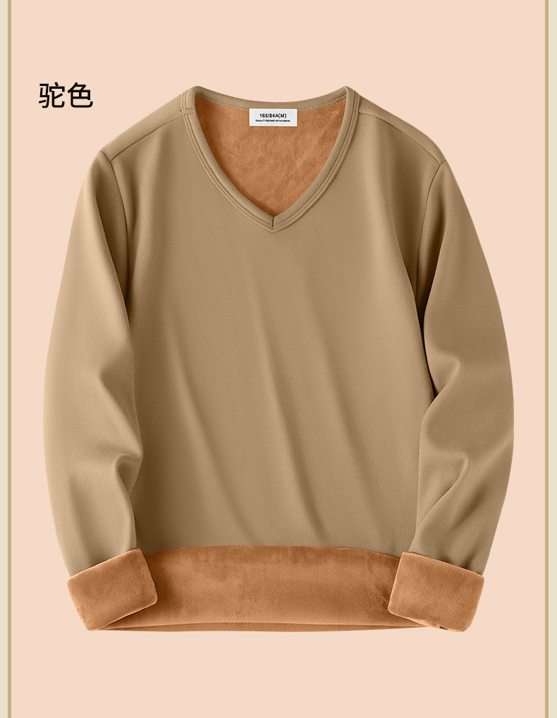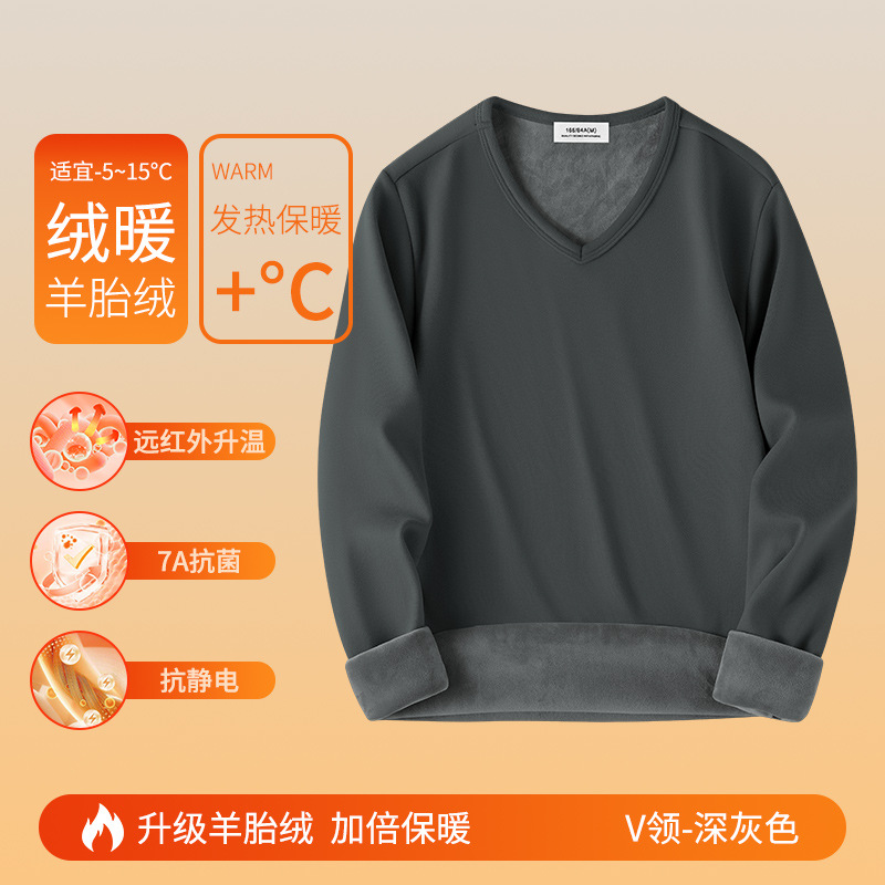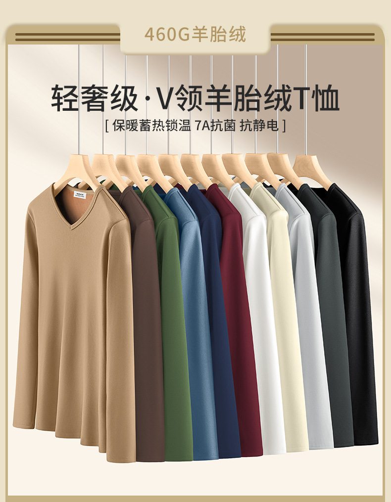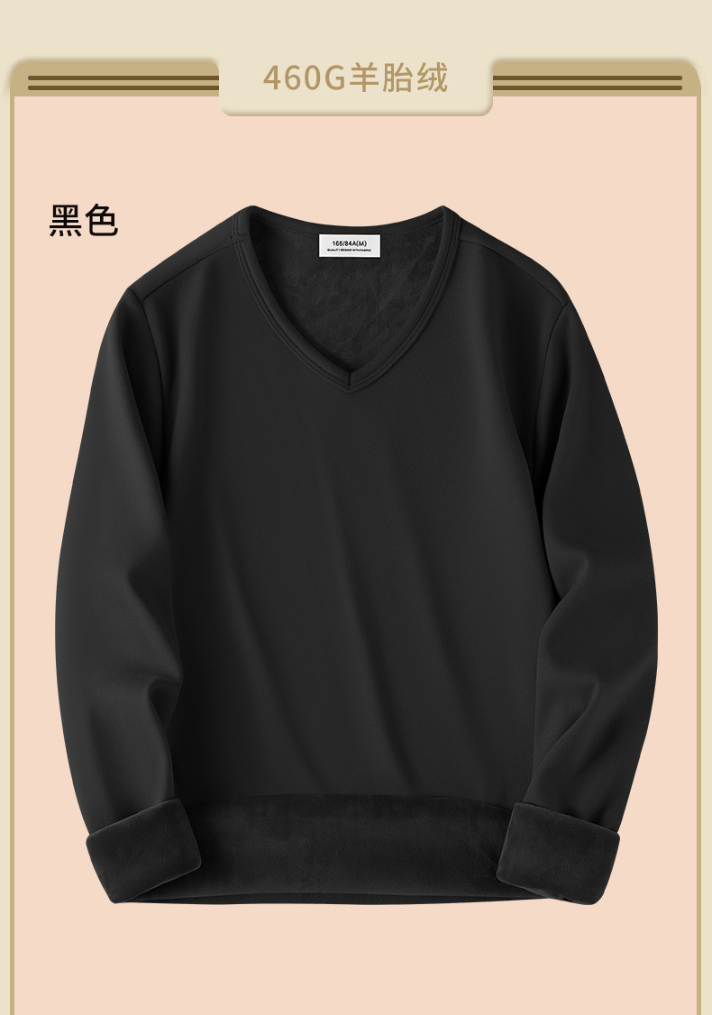 460G 캐시미어 V 넥 기모 바닥 셔츠 남성 가을과 겨울 새로운 양면 벨벳 따뜻한 내부 긴 소매 티셔츠 남성스토어 가기