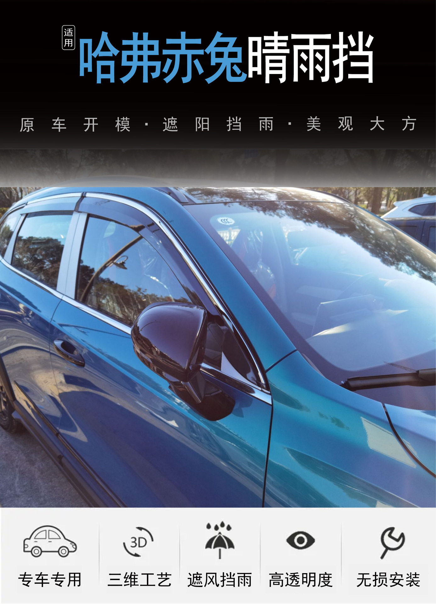 2021 년 Haver Red Rabbit Jolion Pro 창 비 접착 자동차 비 방패의 국경 간 적용