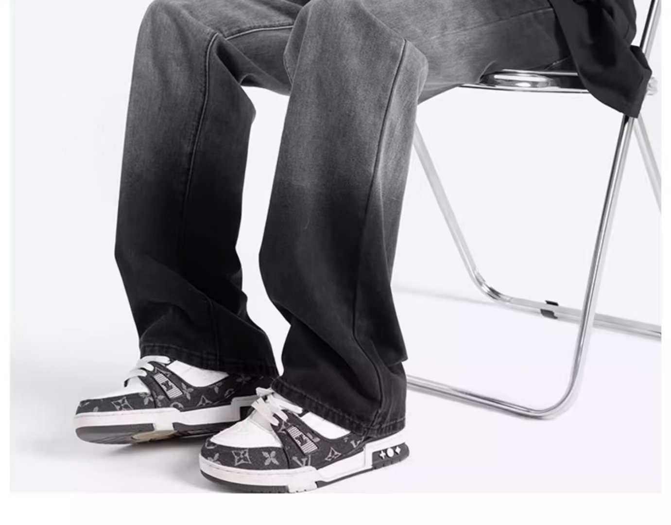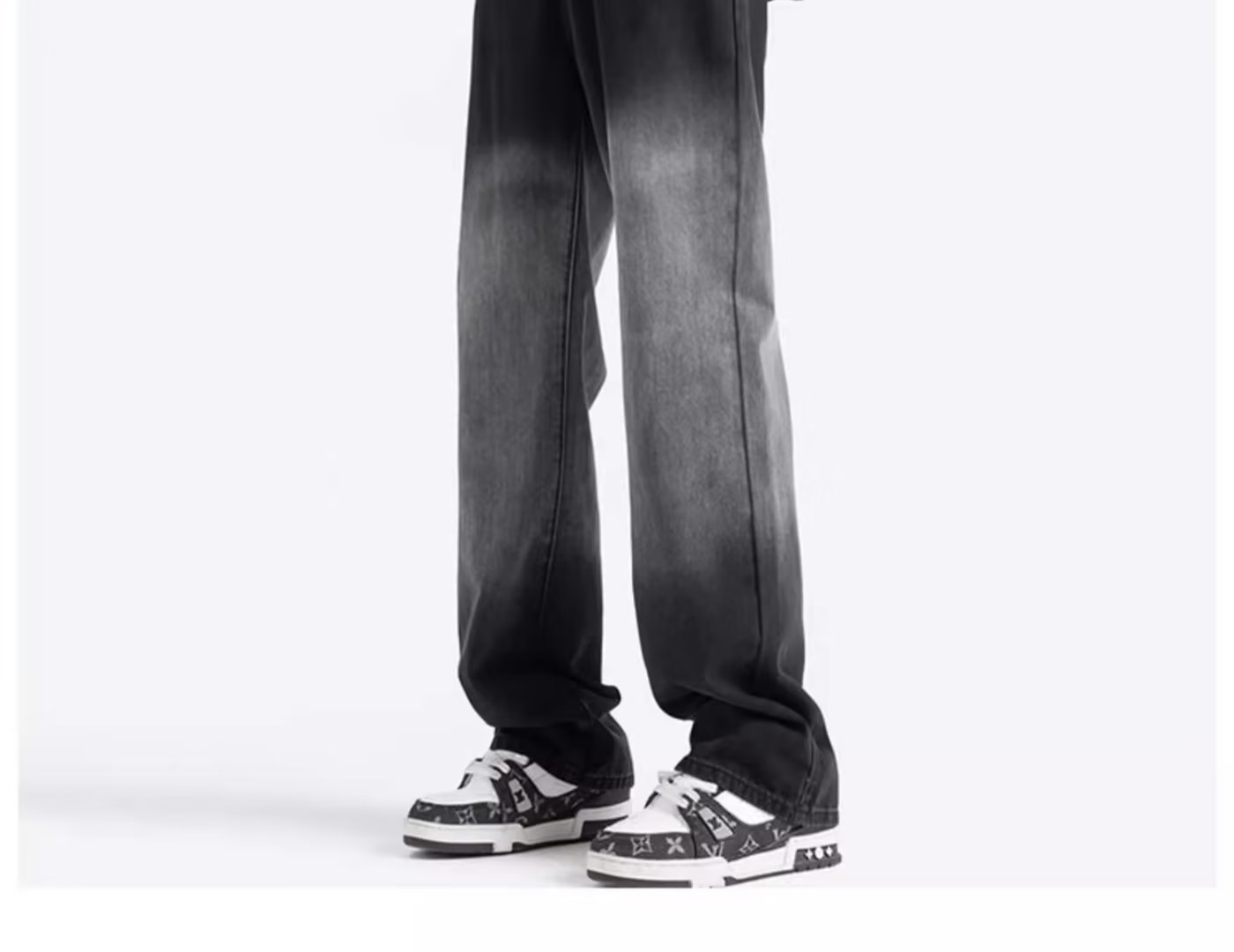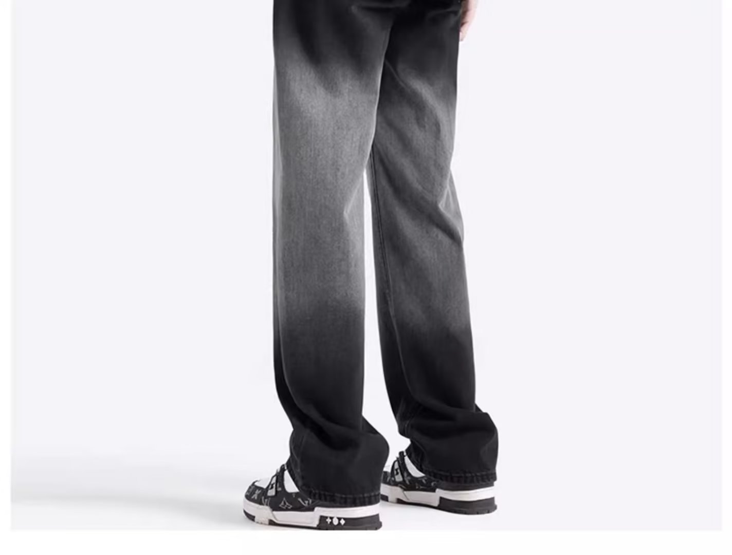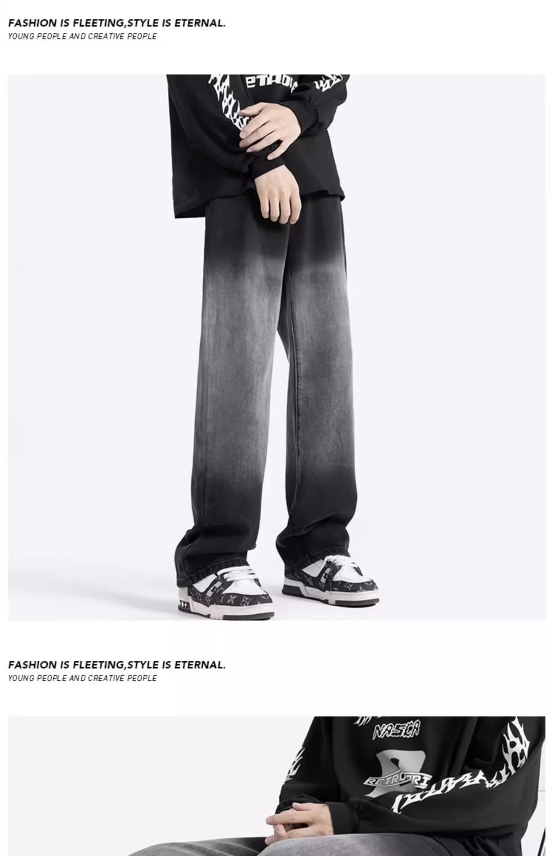 高街渐变牛仔裤男秋季潮牌宽松水洗做旧直筒裤休闲微喇裤一件代发