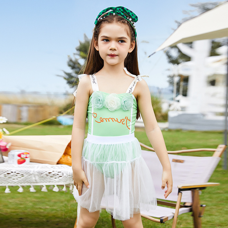 새 어린이 수영복 소녀 귀여운 입체 꽃 중소 어린이 아기 소녀 공주 스커트 투피스 수영복스토어 가기
