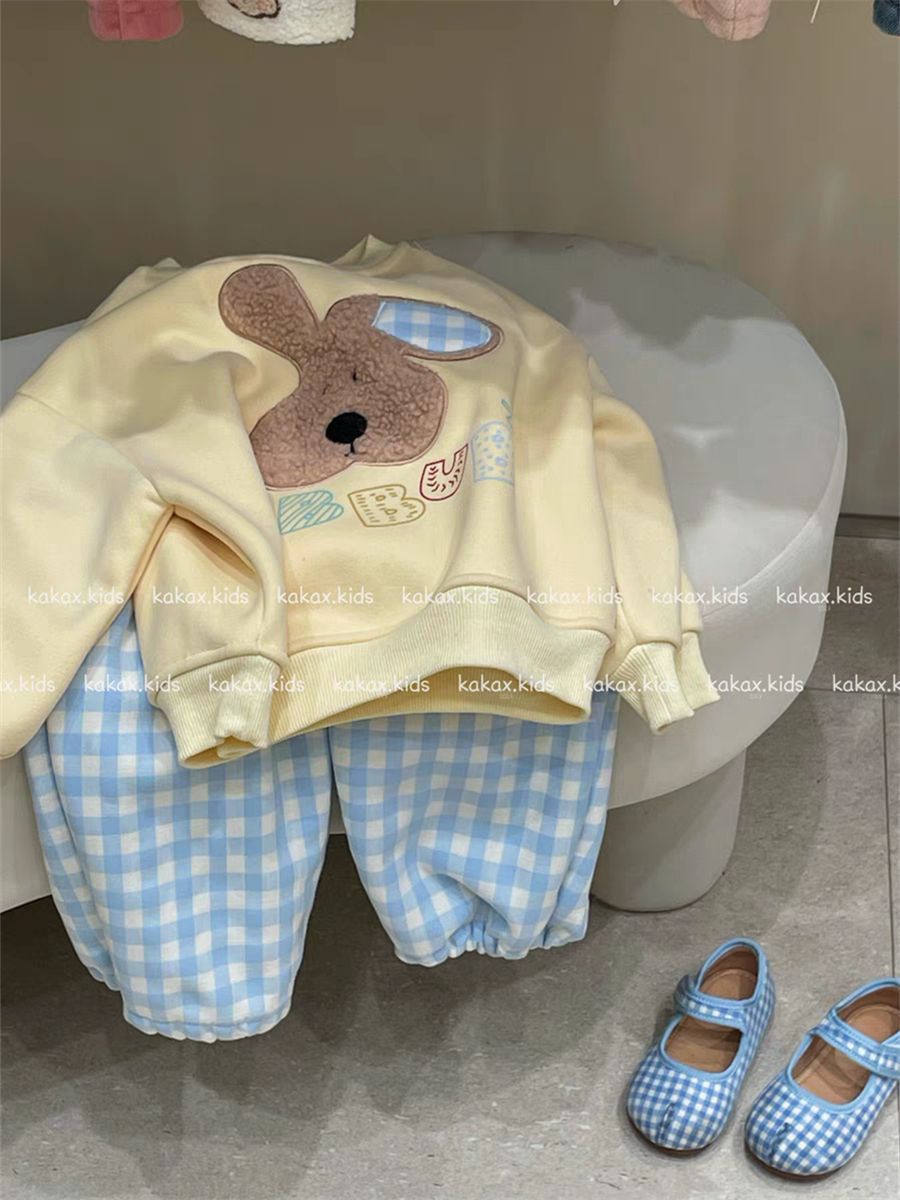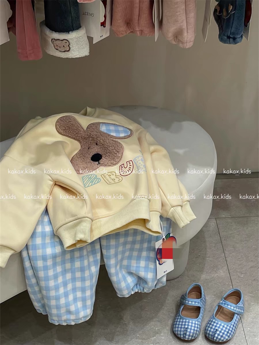 여자 가을과 겨울 새로운 자수 토끼 기모 스웨터 바지 세트 우유 푸푸 유치원 세트 도매스토어 가기