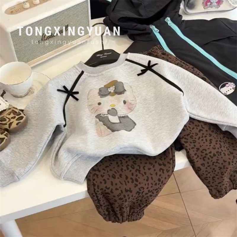 여자 가을과 겨울 새로운 자수 토끼 기모 스웨터 바지 세트 우유 푸푸 유치원 세트 도매