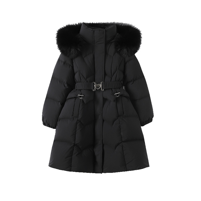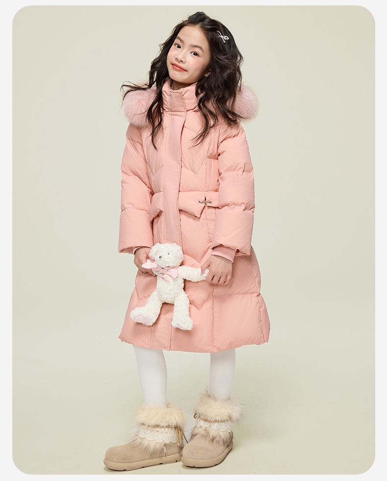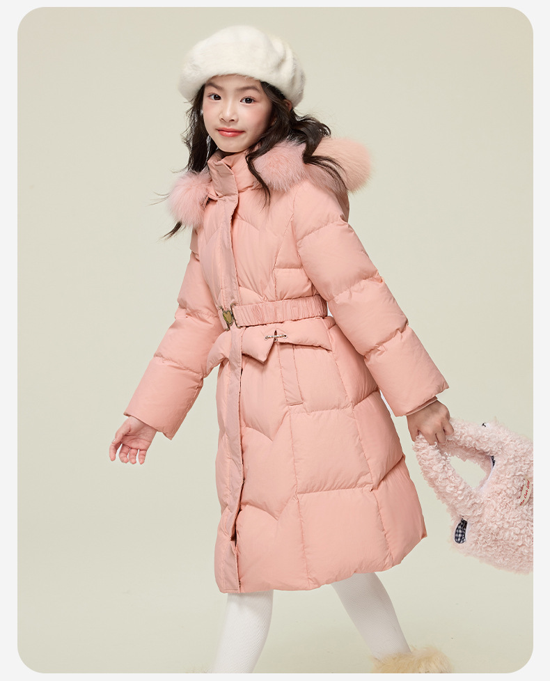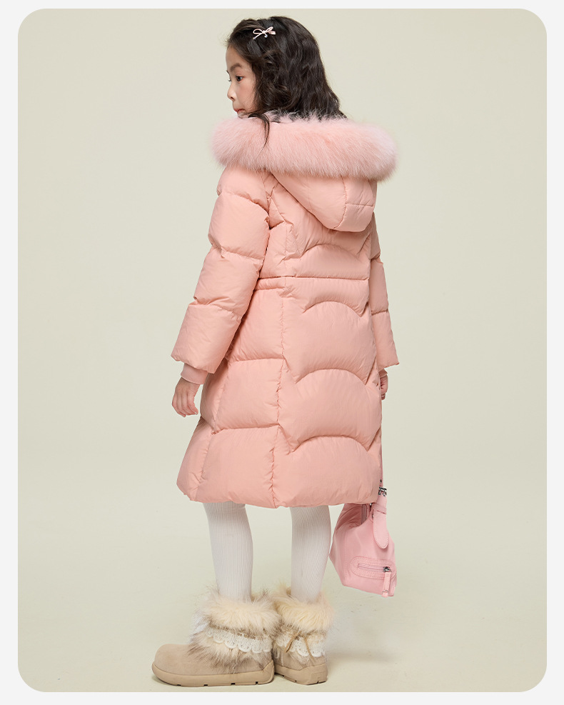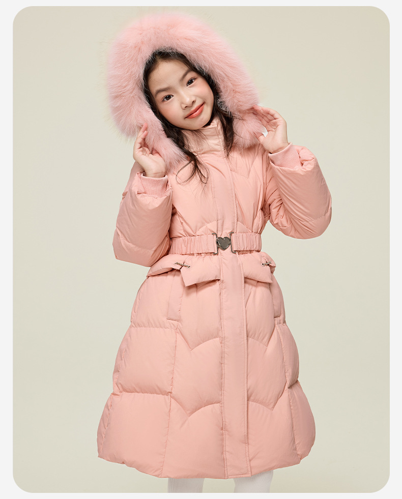 원원 공주 여아용 다운 재킷 2025 겨울 신상 아동용 두꺼운 따뜻한 후드 롱 다운 재킷