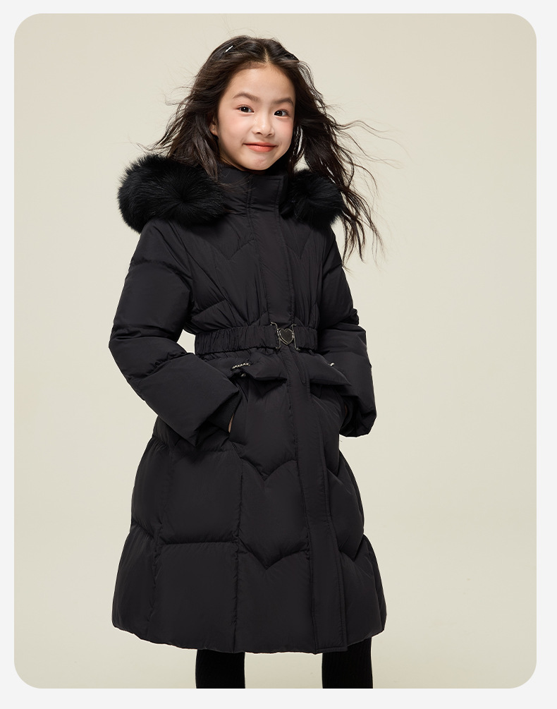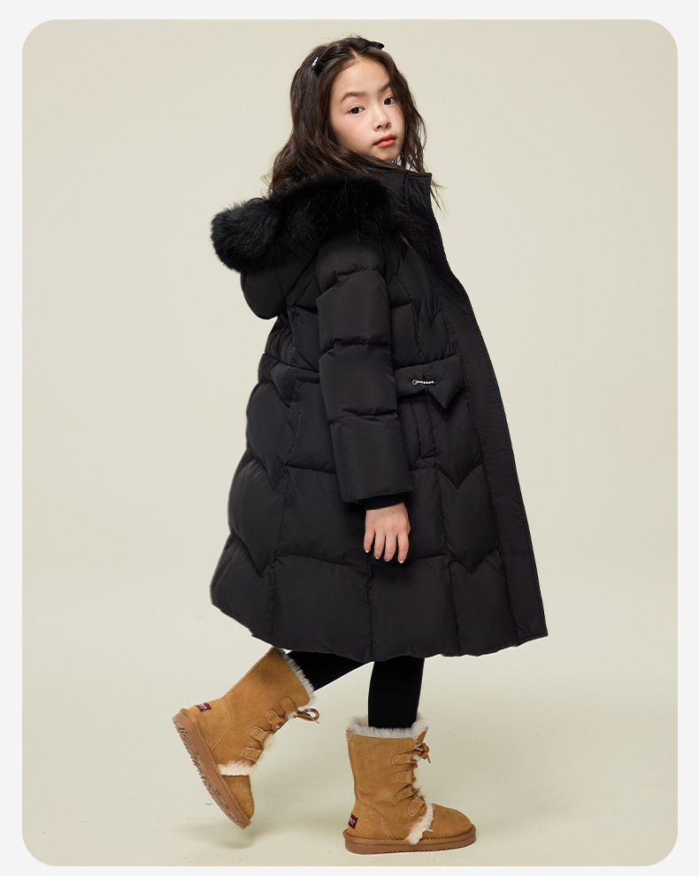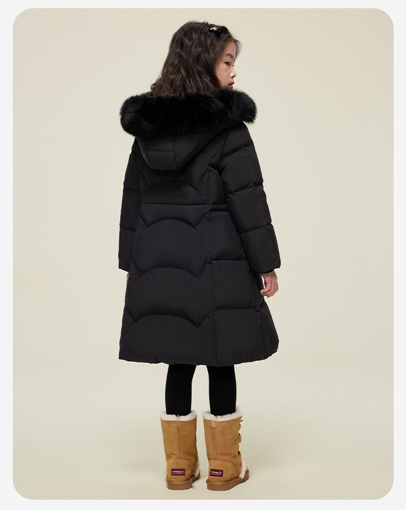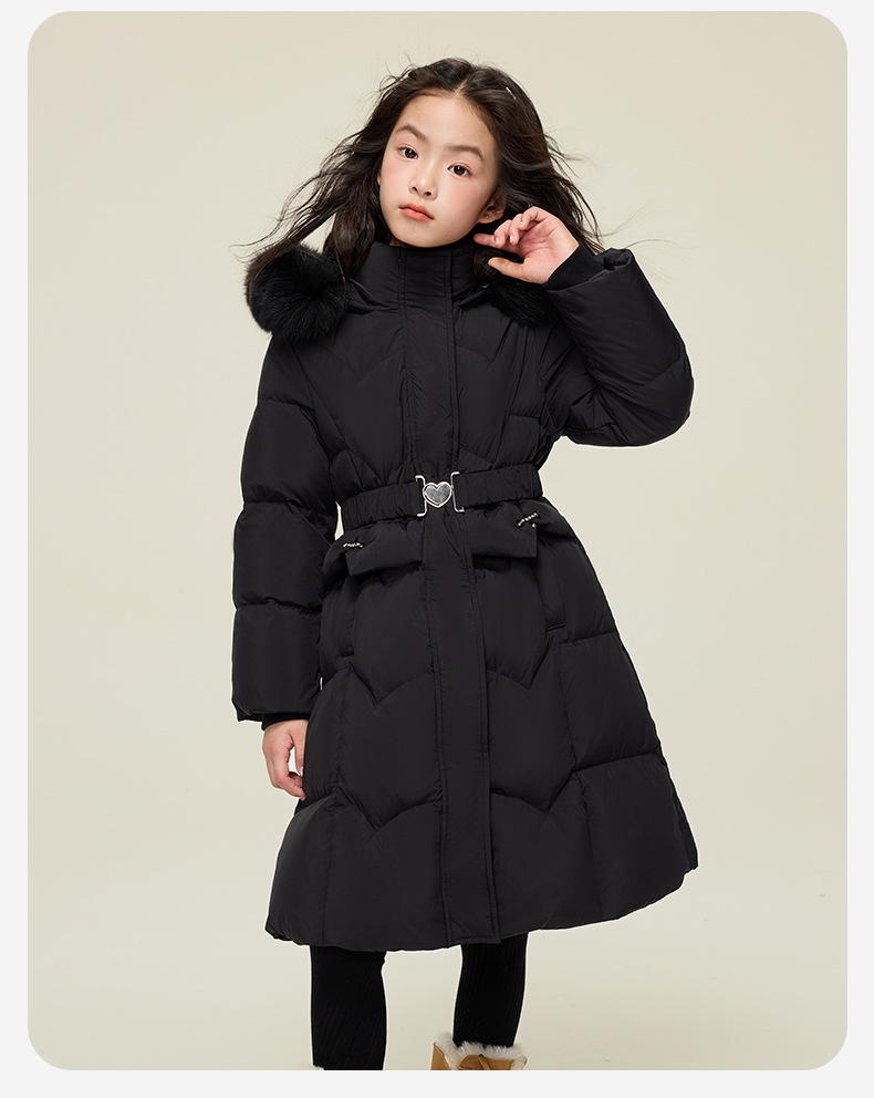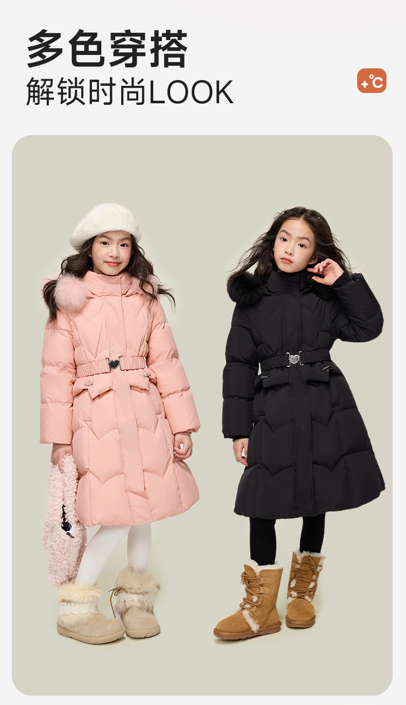 원원 공주 여아용 다운 재킷 2025 겨울 신상 아동용 두꺼운 따뜻한 후드 롱 다운 재킷