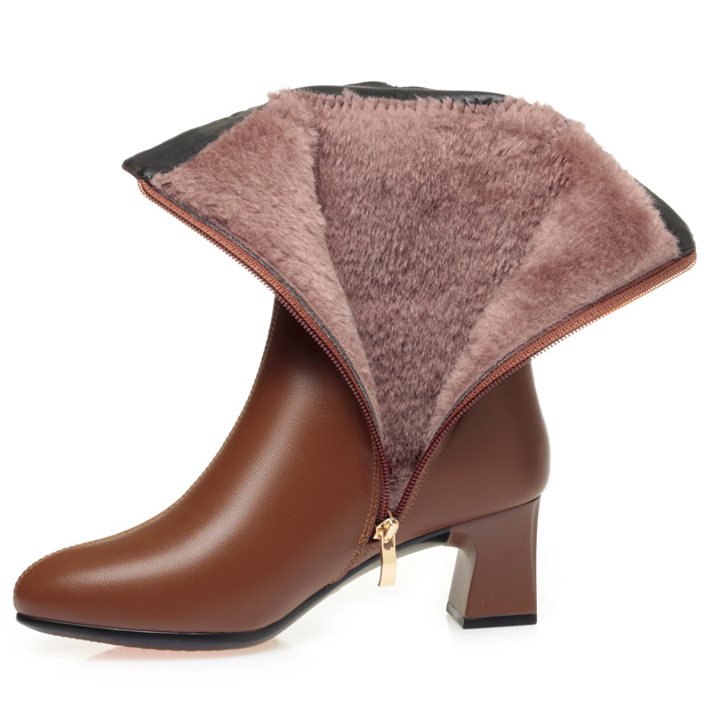 슬림 어머니 패션 두꺼운 굽 여성 부츠 겨울면 부츠를 기모 하이힐 부츠 여성 패션스토어 가기
