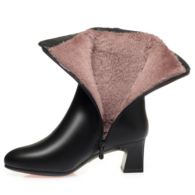 슬림 어머니 패션 두꺼운 굽 여성 부츠 겨울면 부츠를 기모 하이힐 부츠 여성 패션